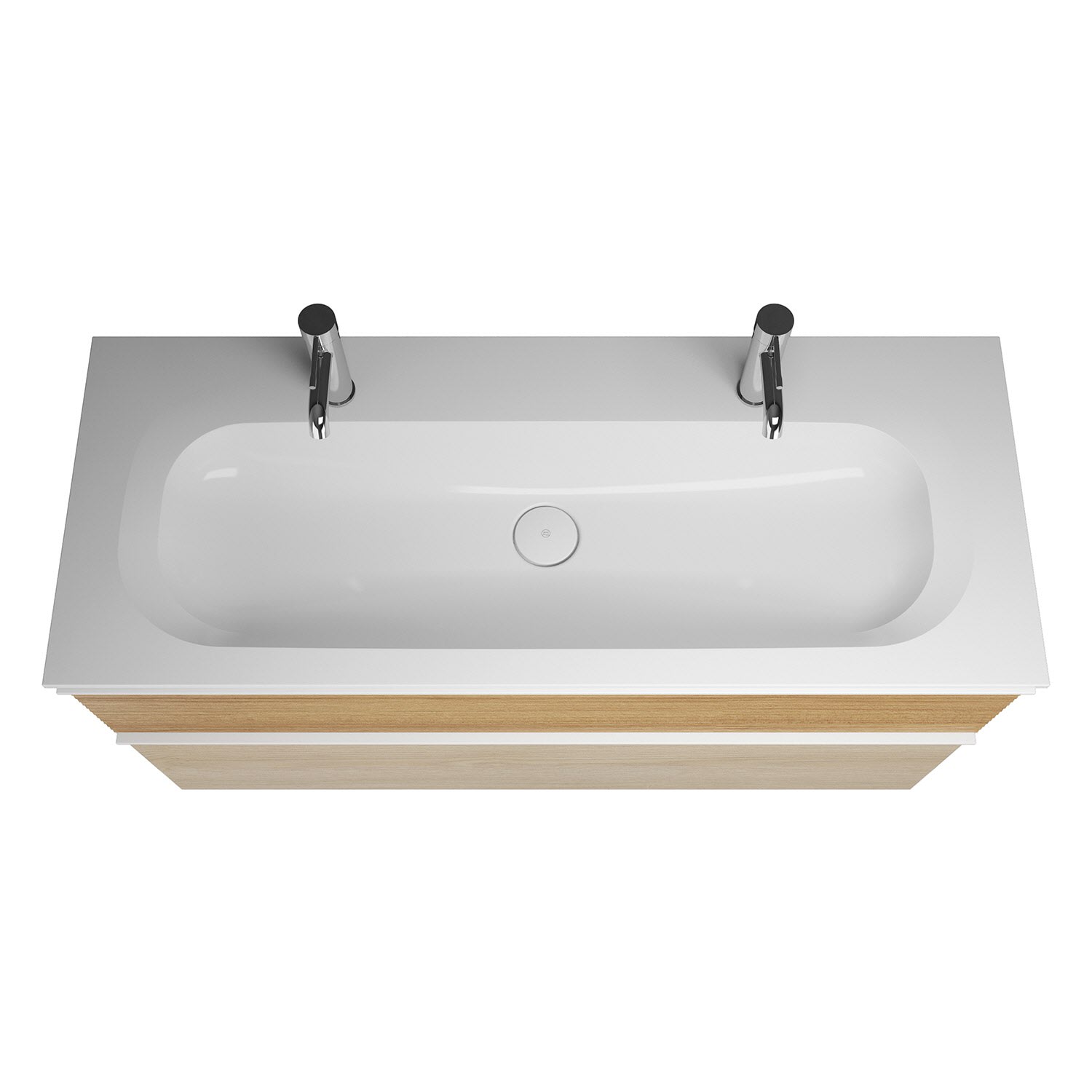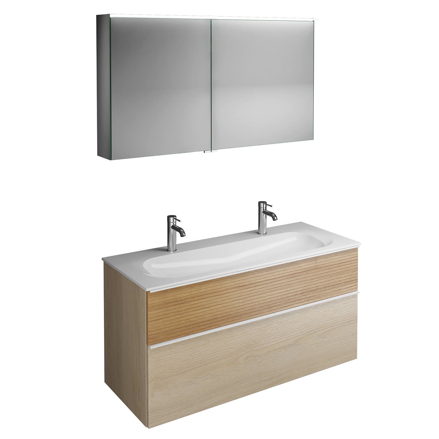 burgbad Fiumo Badmöbel-Set 122 cm mit Waschtisch mit 2 Hahnlöcher und Unterschrank mit Griff G0223 sowie mit Spiegelschrank