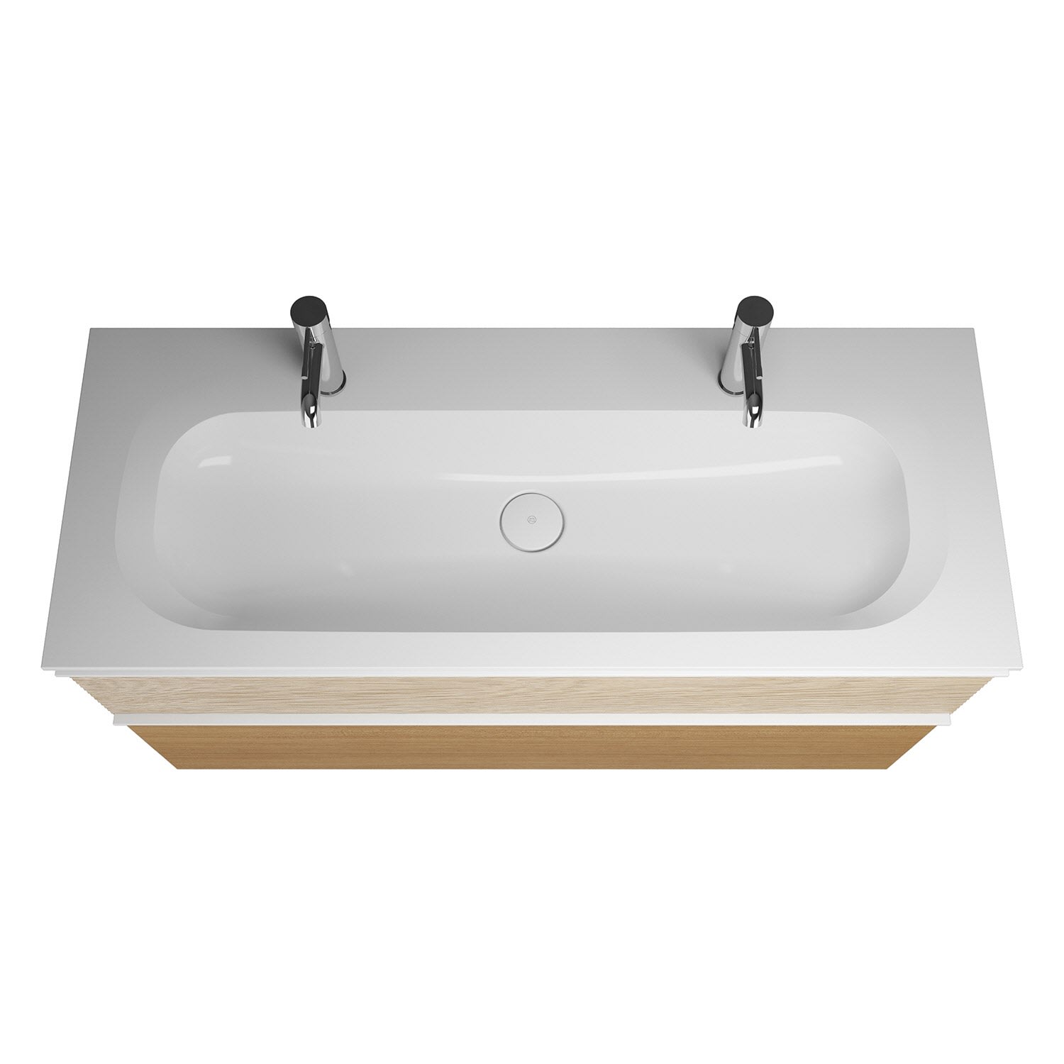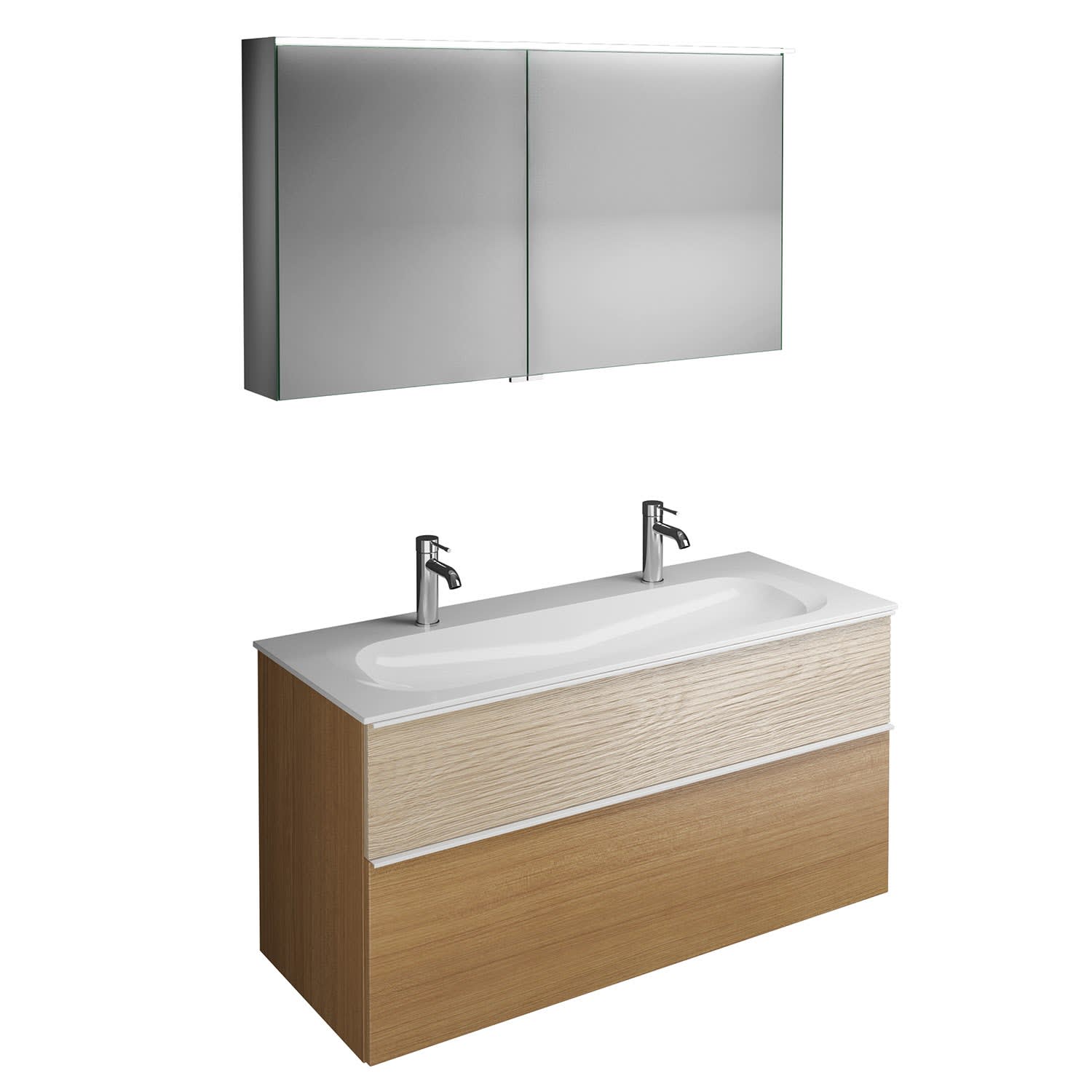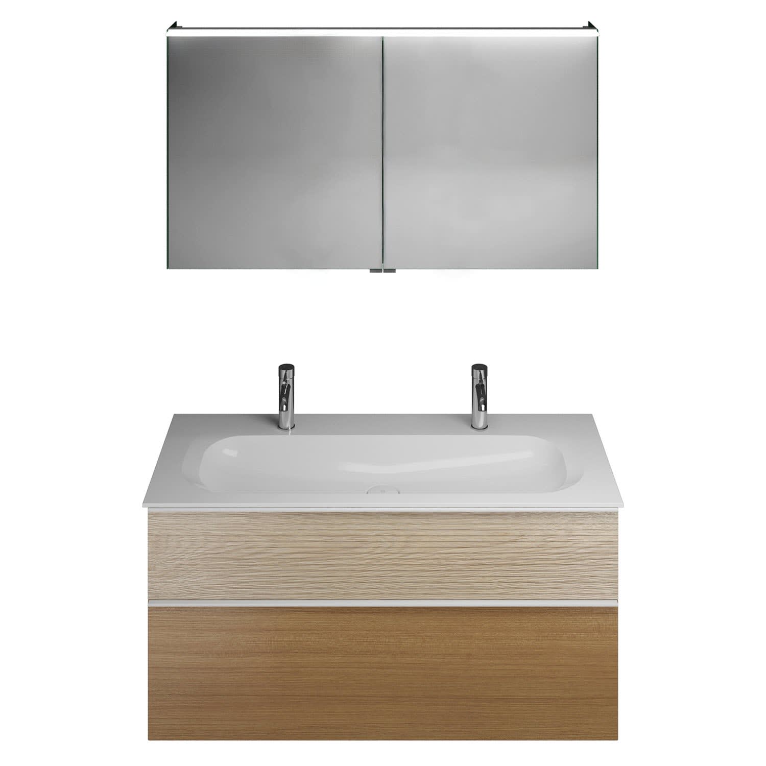 burgbad Fiumo Badmöbel-Set 122 cm mit Waschtisch mit 2 Hahnlöcher und Unterschrank mit Griff G0223 sowie mit Spiegelschrank