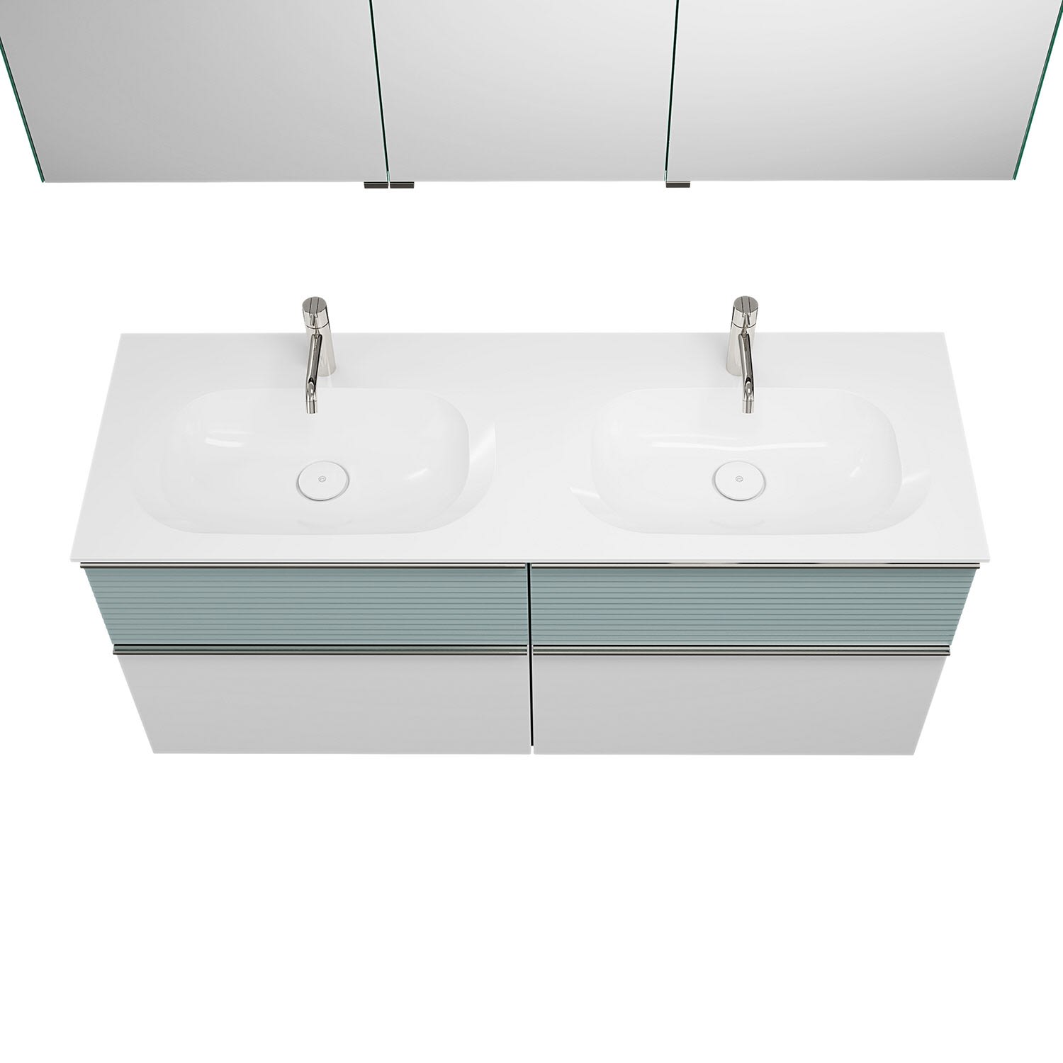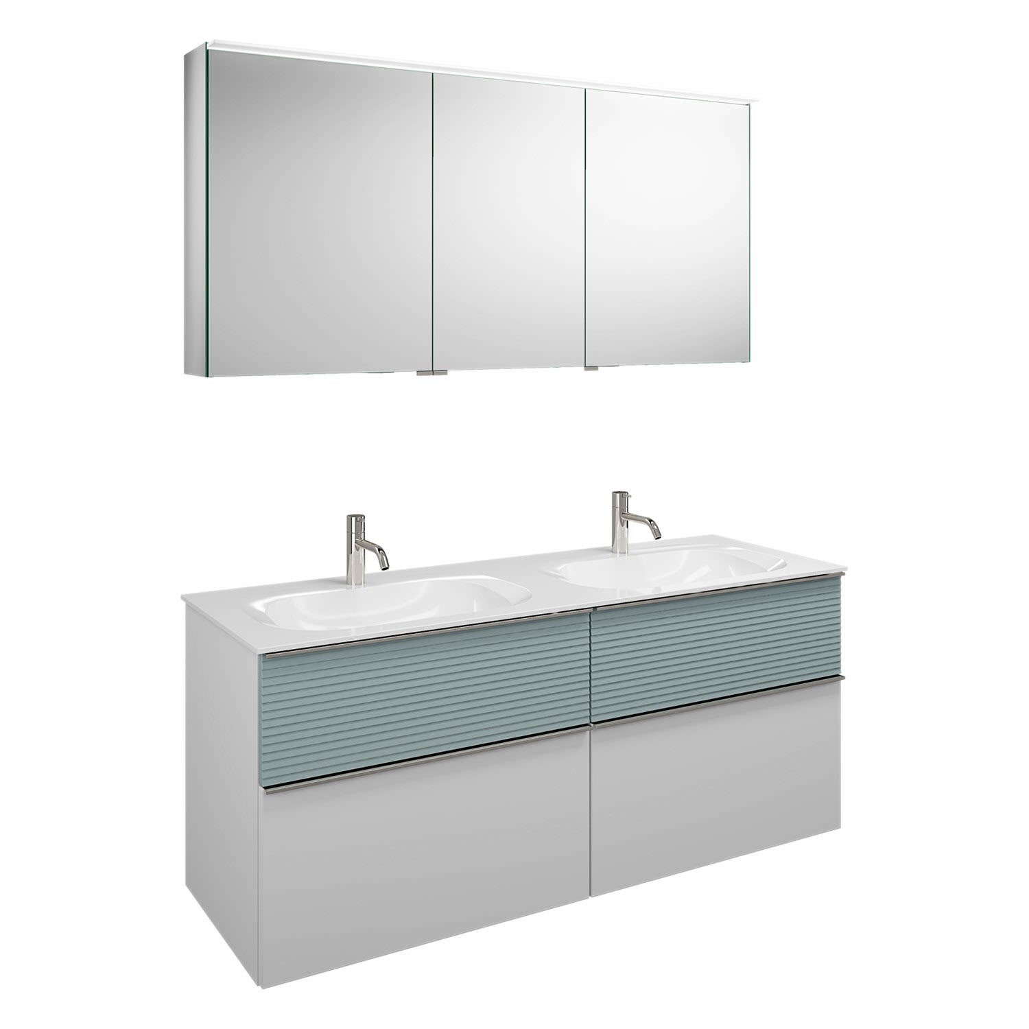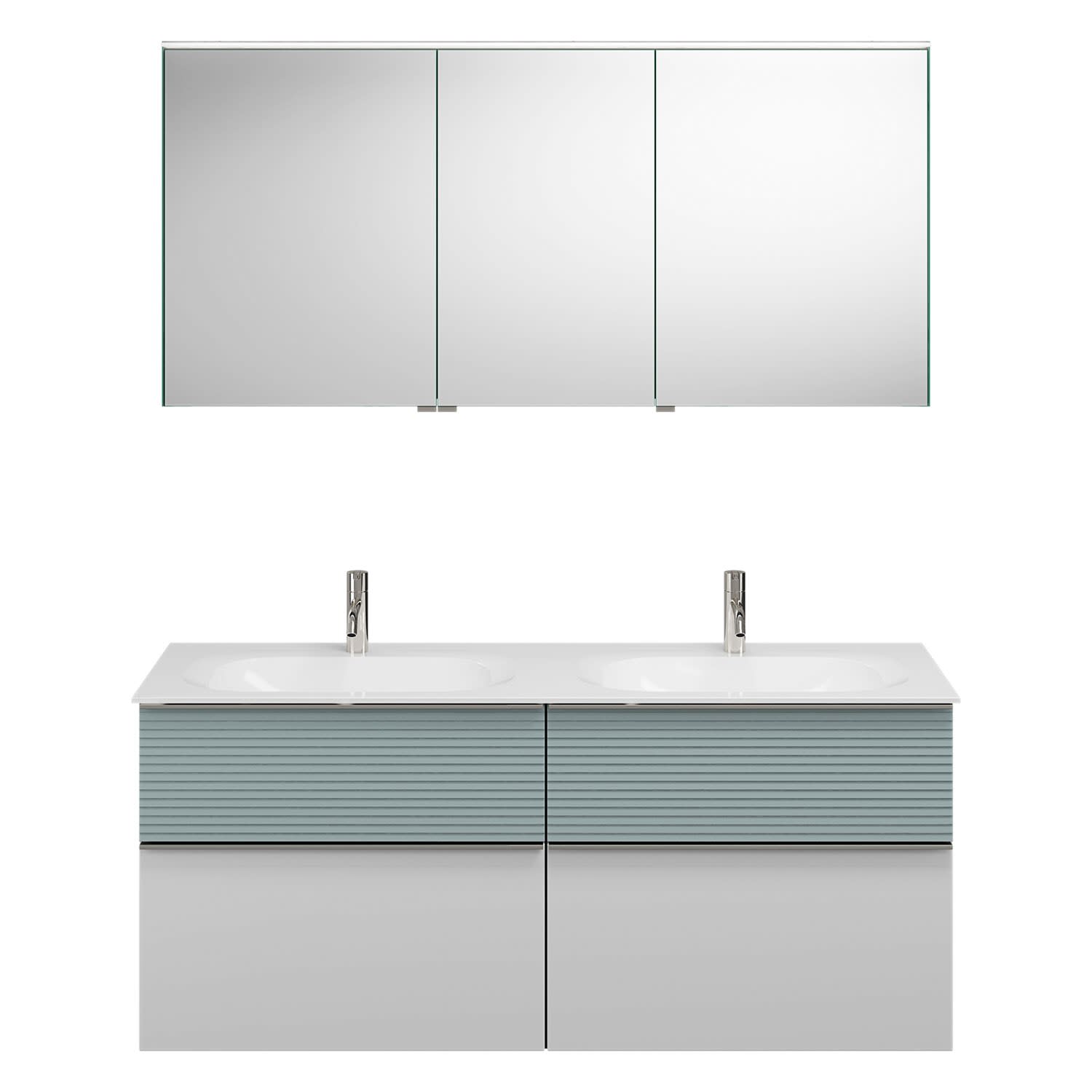 burgbad Fiumo Badmöbel-Set 142 cm mit Doppel-Waschtisch und Unterschrank mit Griff G0146 sowie mit Spiegelschrank