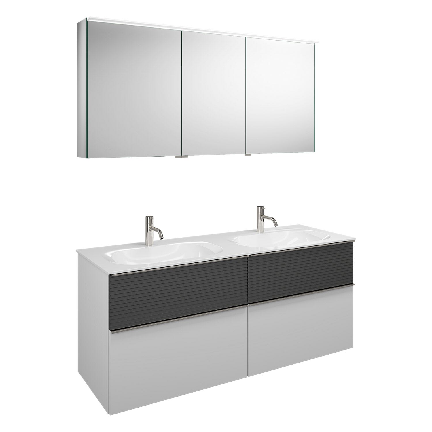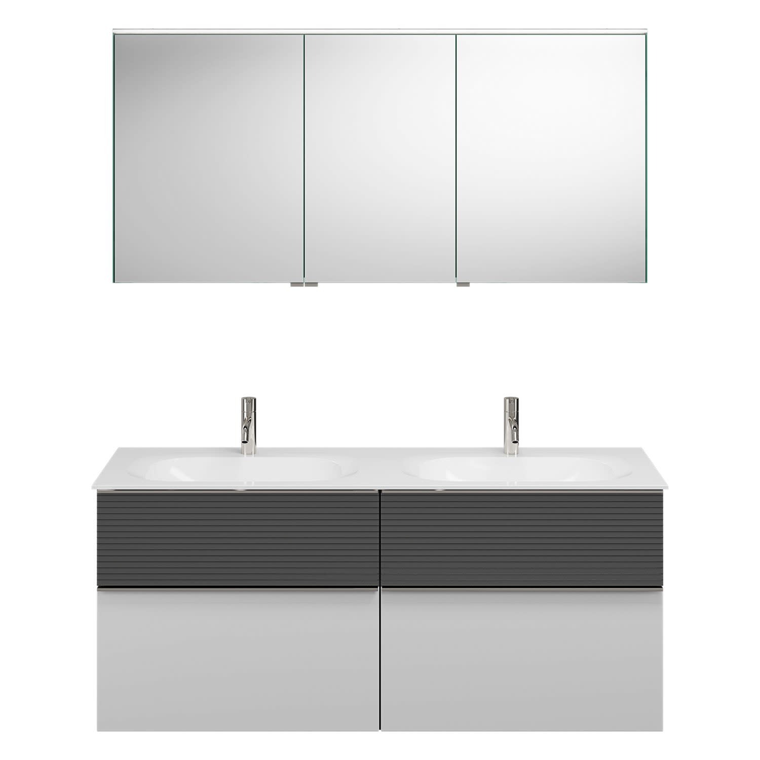 burgbad Fiumo Badmöbel-Set 142 cm mit Doppel-Waschtisch und Unterschrank mit Griff G0146 sowie mit Spiegelschrank