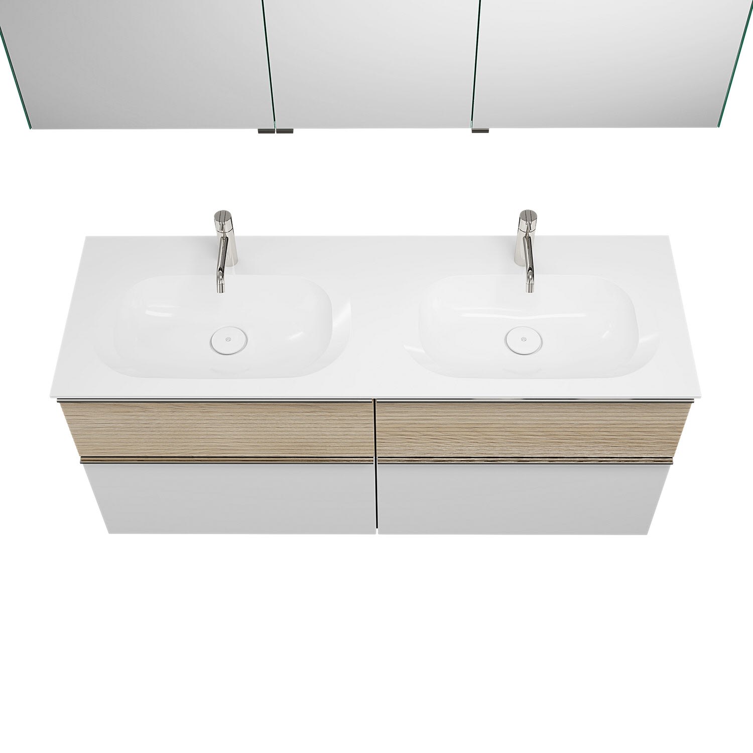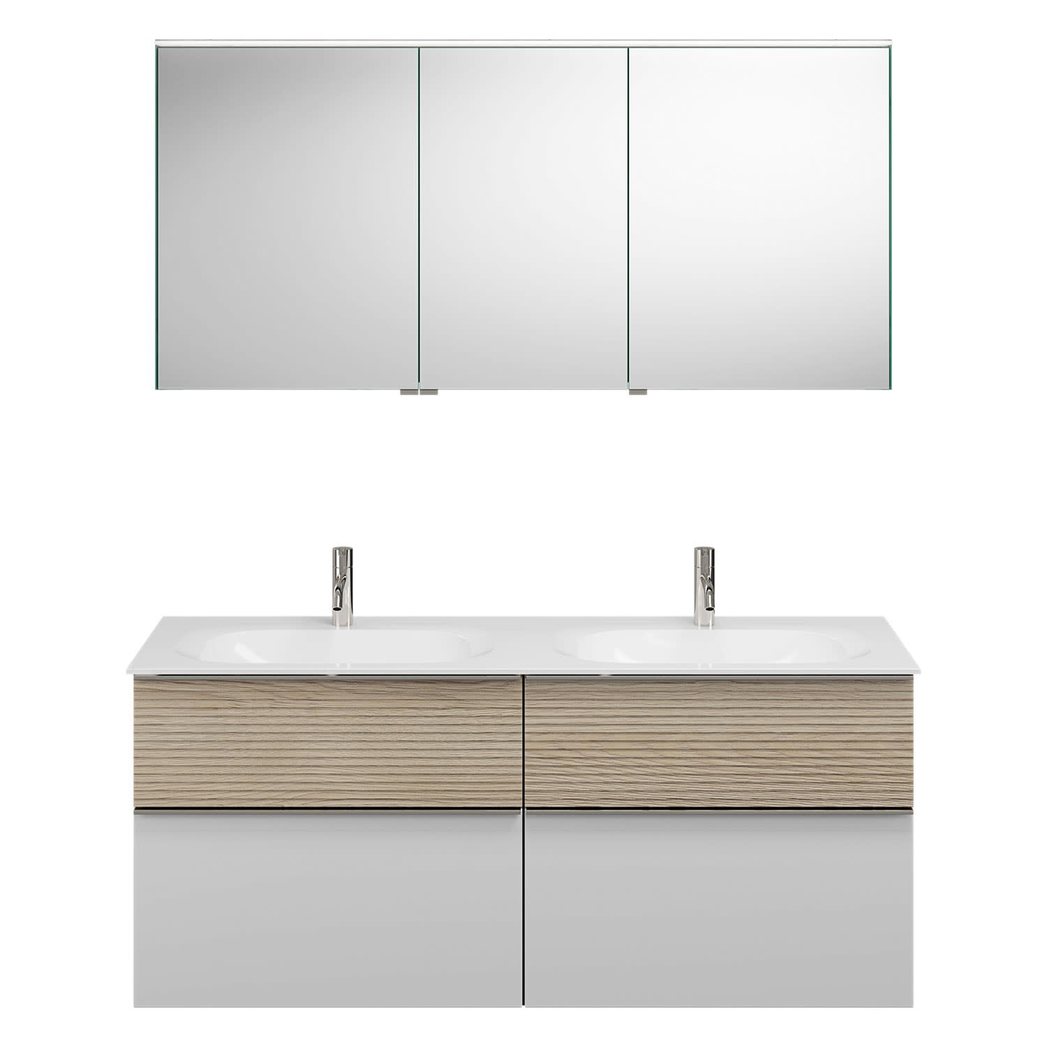 burgbad Fiumo Badmöbel-Set 142 cm mit Doppel-Waschtisch und Unterschrank mit Griff G0146 sowie mit Spiegelschrank
