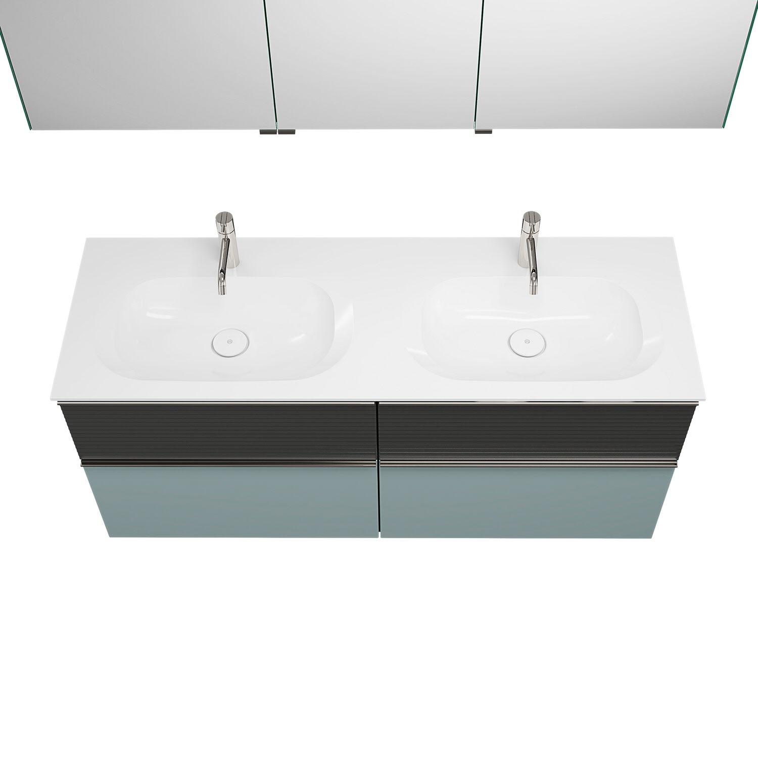 burgbad Fiumo Badmöbel-Set 142 cm mit Doppel-Waschtisch und Unterschrank mit Griff G0146 sowie mit Spiegelschrank