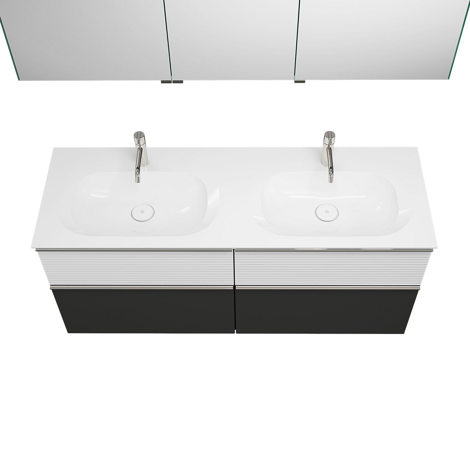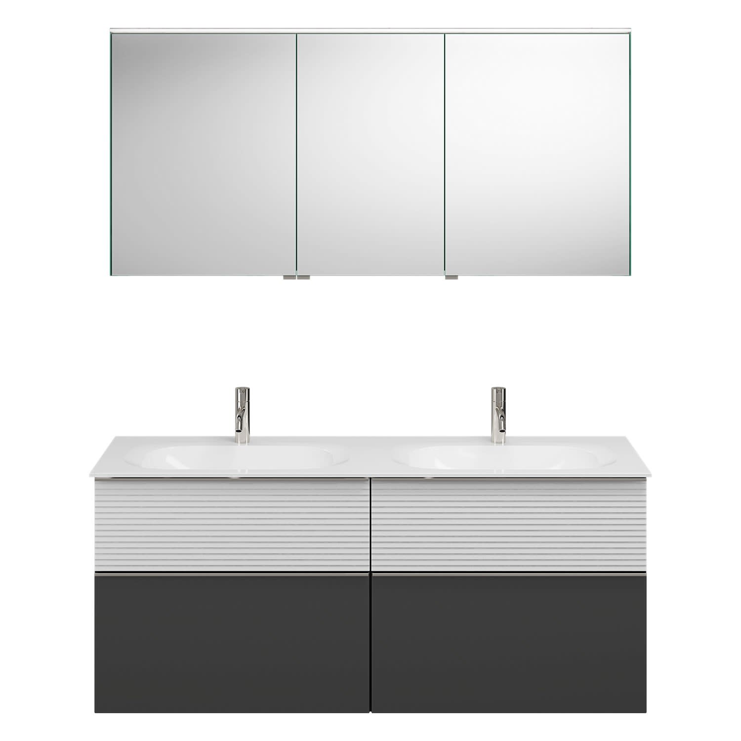 burgbad Fiumo Badmöbel-Set 142 cm mit Doppel-Waschtisch und Unterschrank mit Griff G0146 sowie mit Spiegelschrank