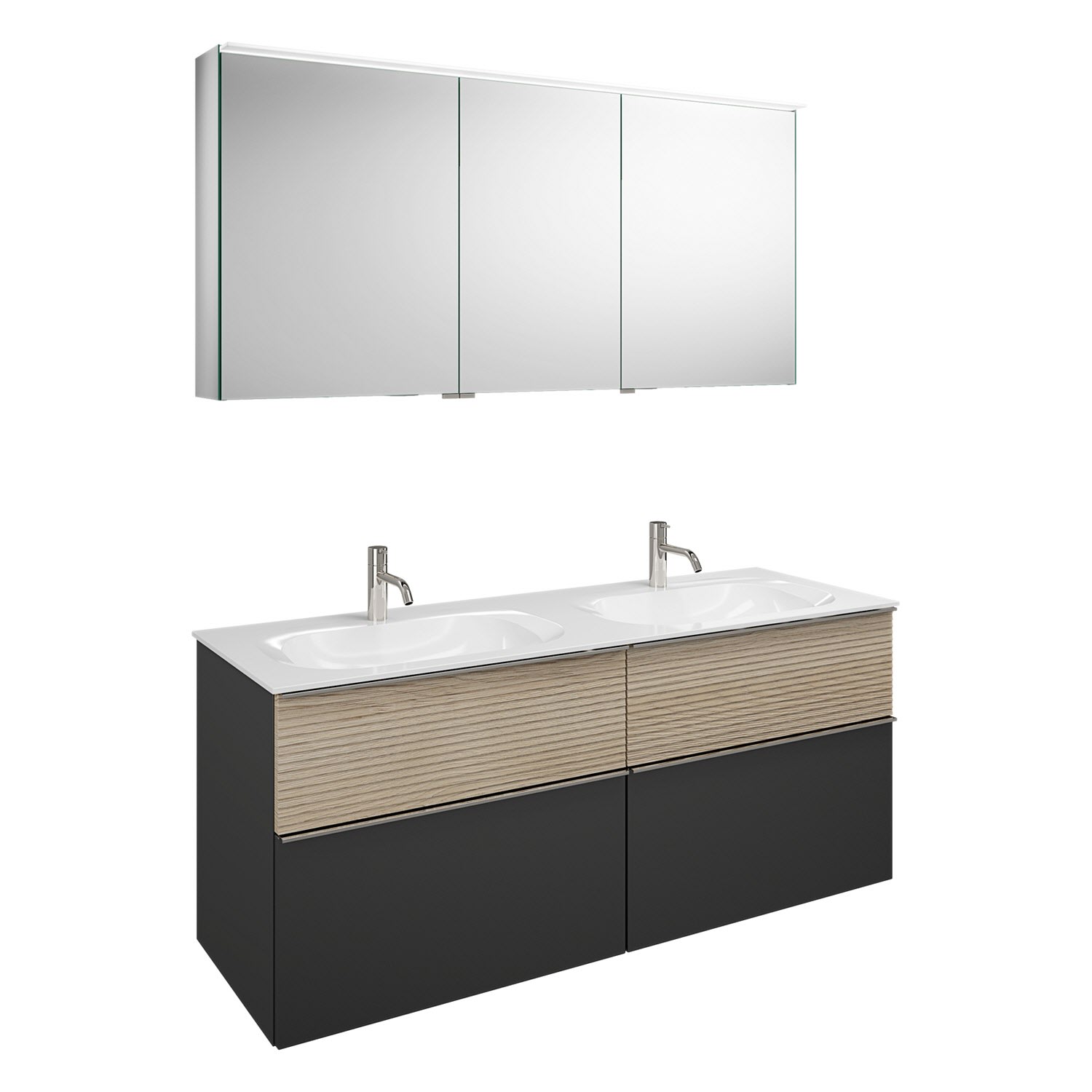 burgbad Fiumo Badmöbel-Set 142 cm mit Doppel-Waschtisch und Unterschrank mit Griff G0146 sowie mit Spiegelschrank