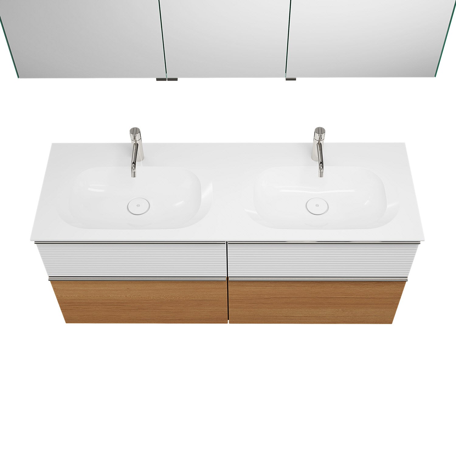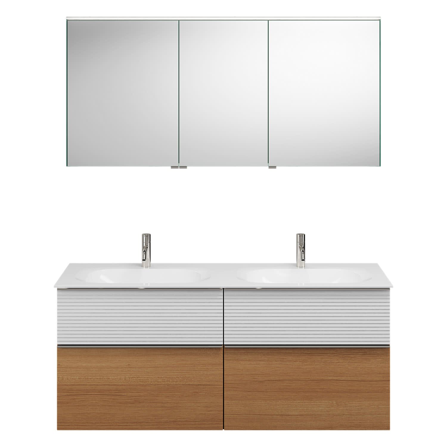 burgbad Fiumo Badmöbel-Set 142 cm mit Doppel-Waschtisch und Unterschrank mit Griff G0146 sowie mit Spiegelschrank