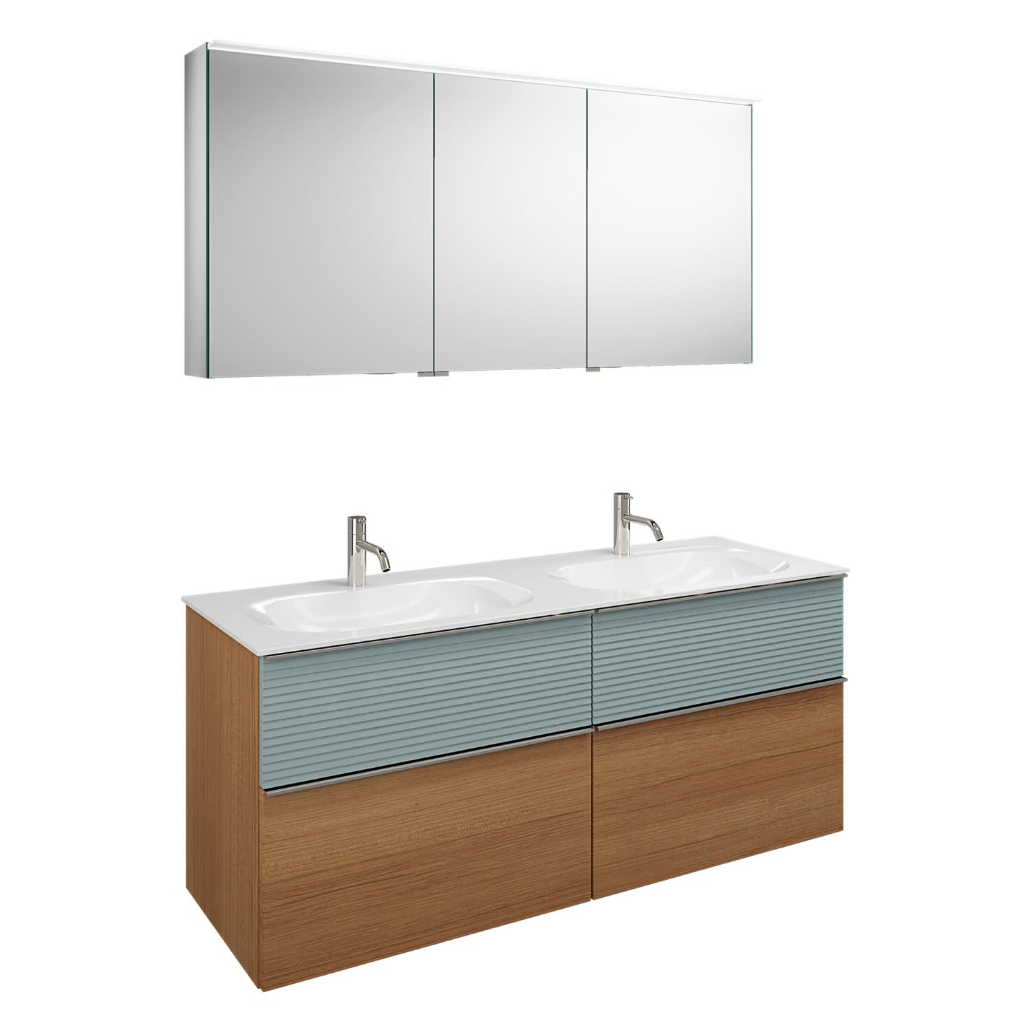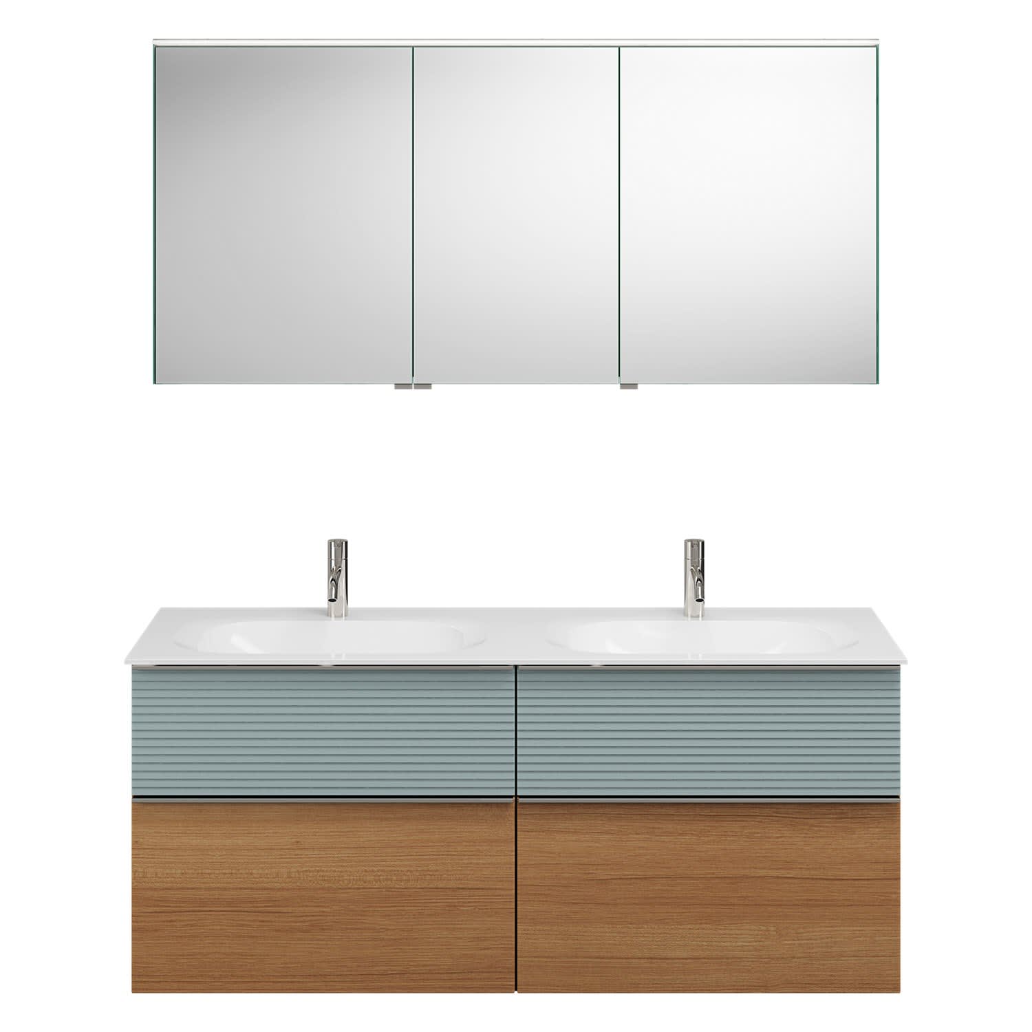 burgbad Fiumo Badmöbel-Set 142 cm mit Doppel-Waschtisch und Unterschrank mit Griff G0146 sowie mit Spiegelschrank