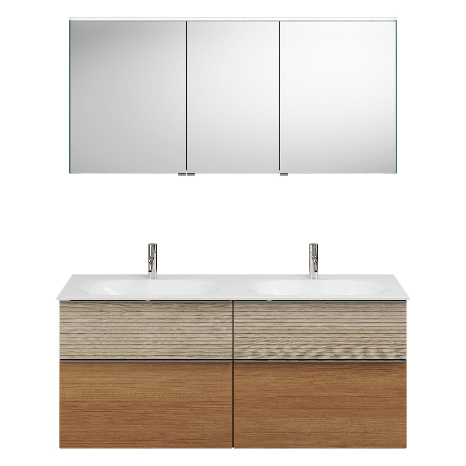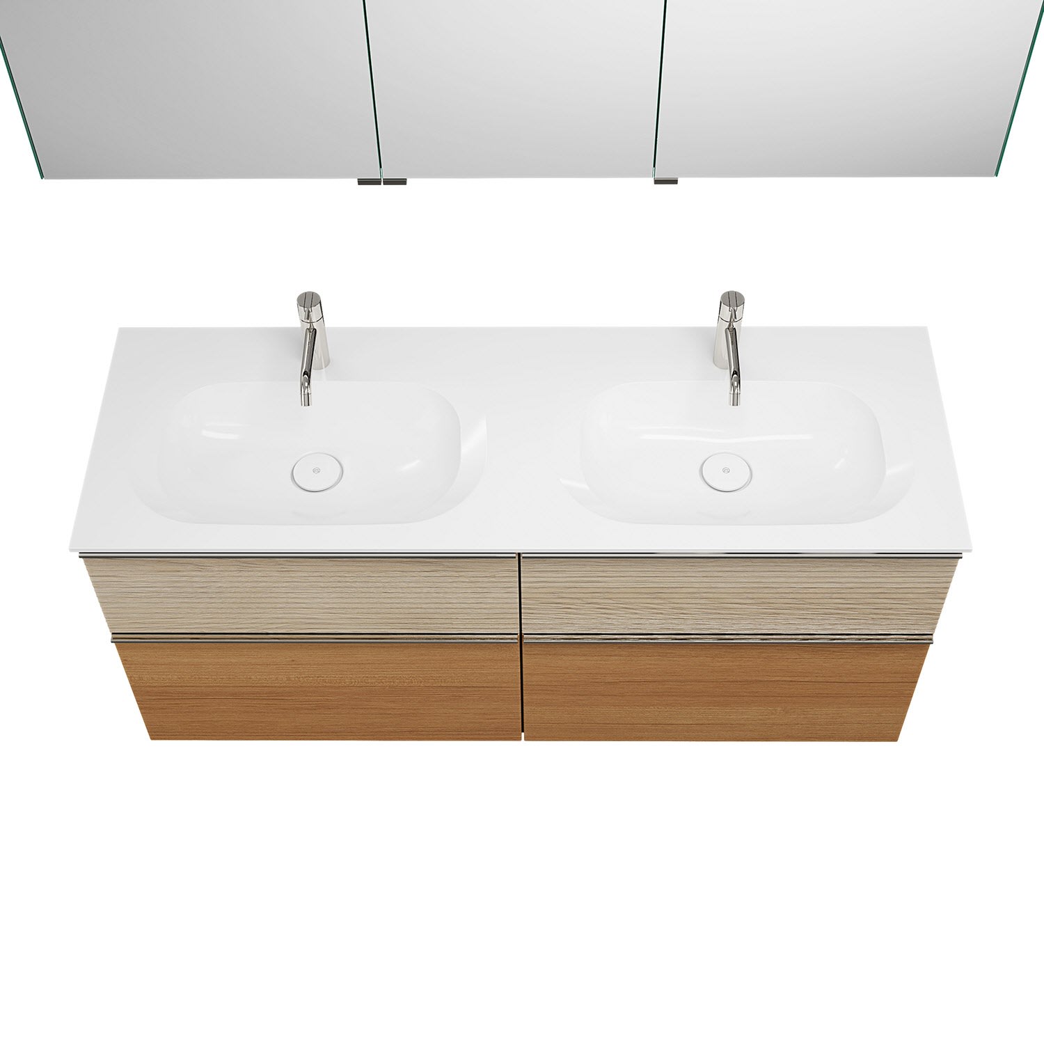burgbad Fiumo Badmöbel-Set 142 cm mit Doppel-Waschtisch und Unterschrank mit Griff G0146 sowie mit Spiegelschrank