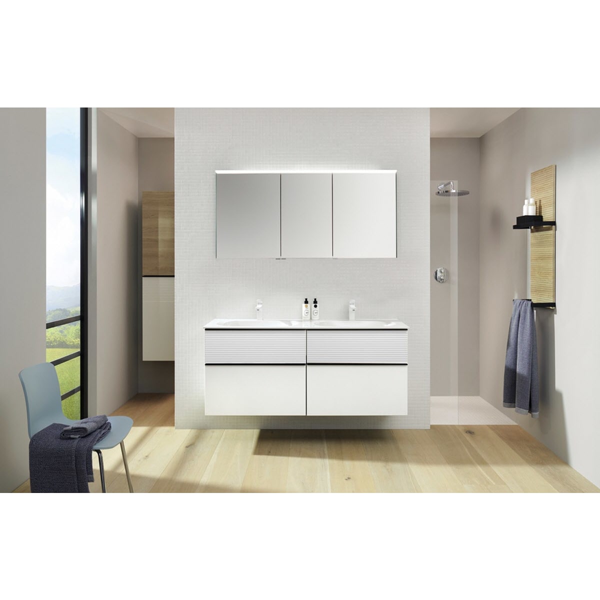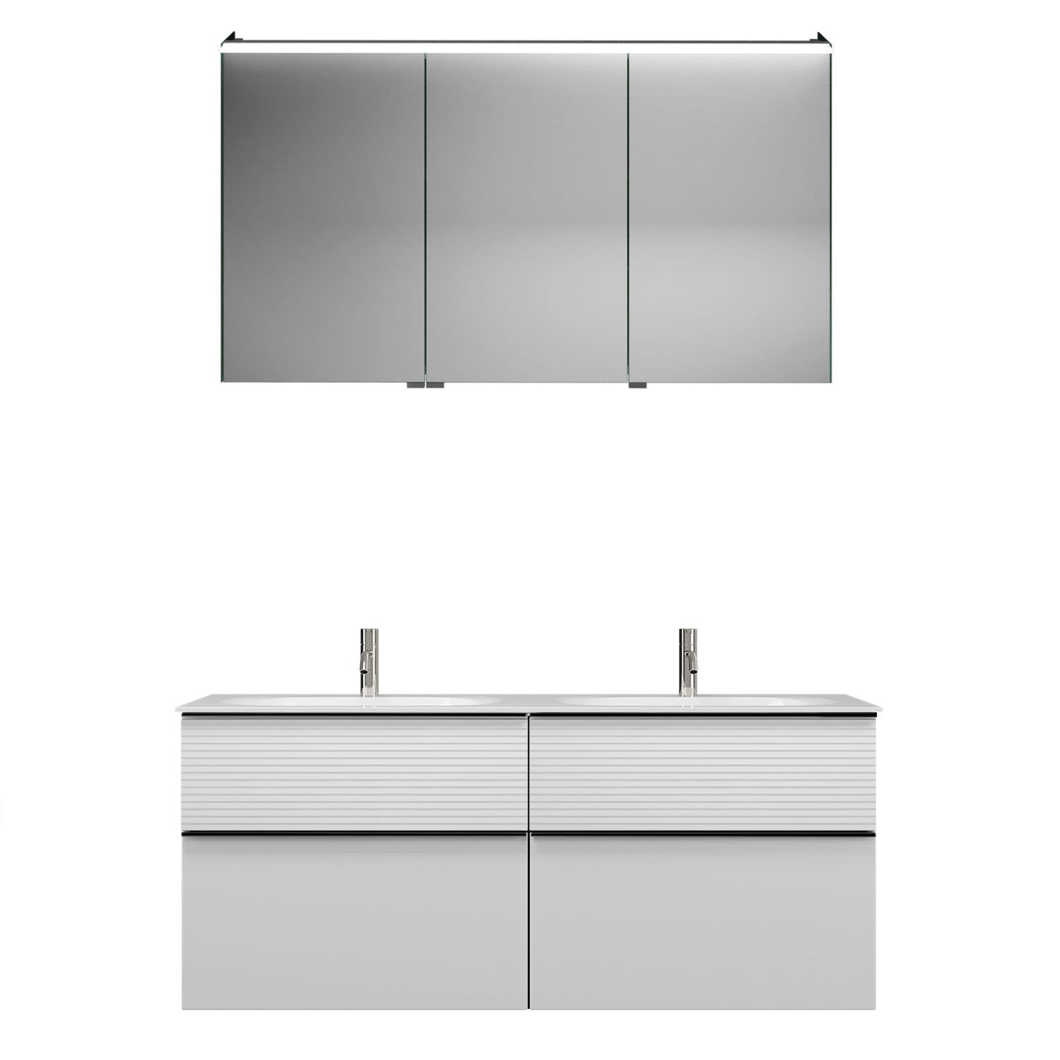 burgbad Fiumo Badmöbel-Set 142 cm mit Doppel-Waschtisch und Unterschrank mit Griff G0200 sowie mit Spiegelschrank