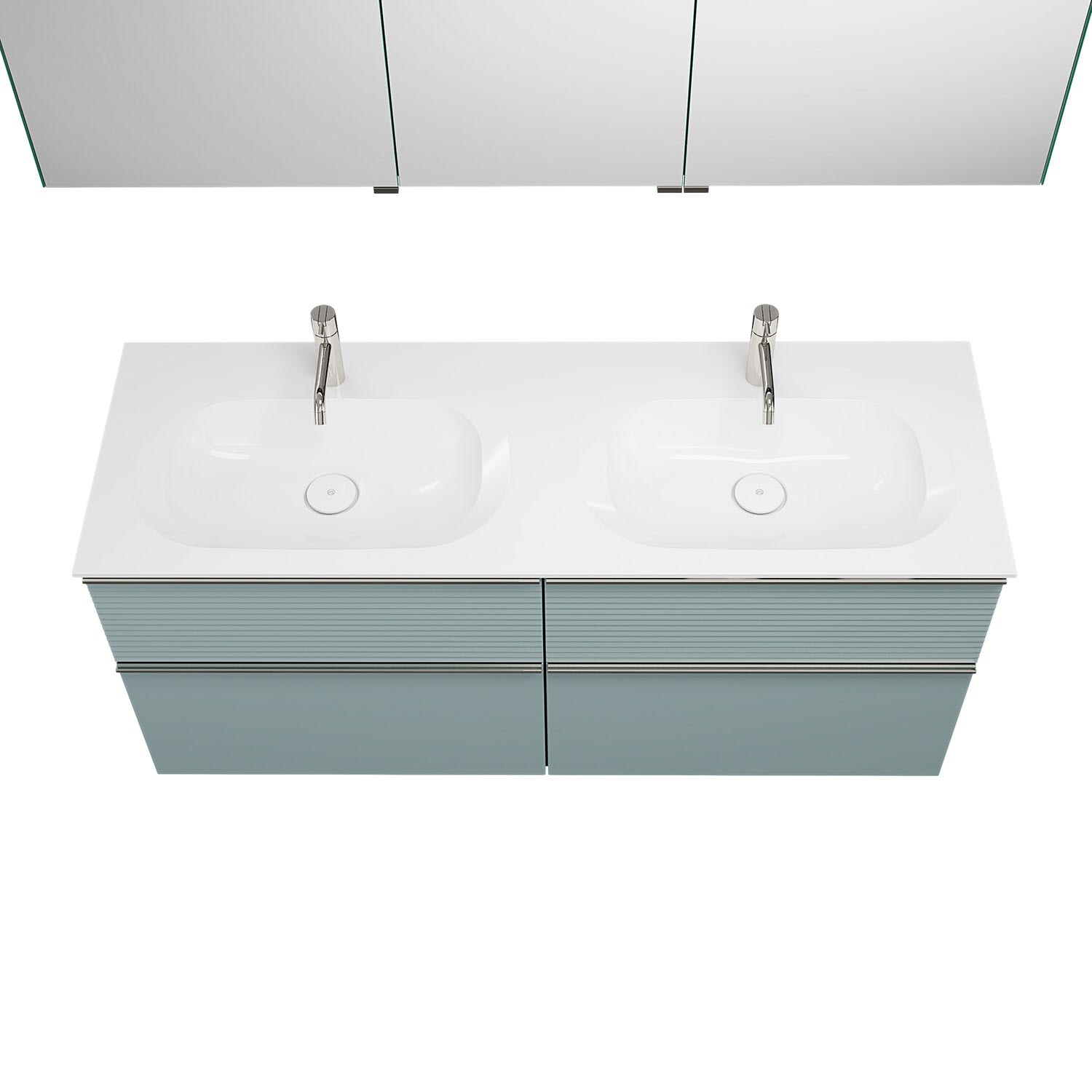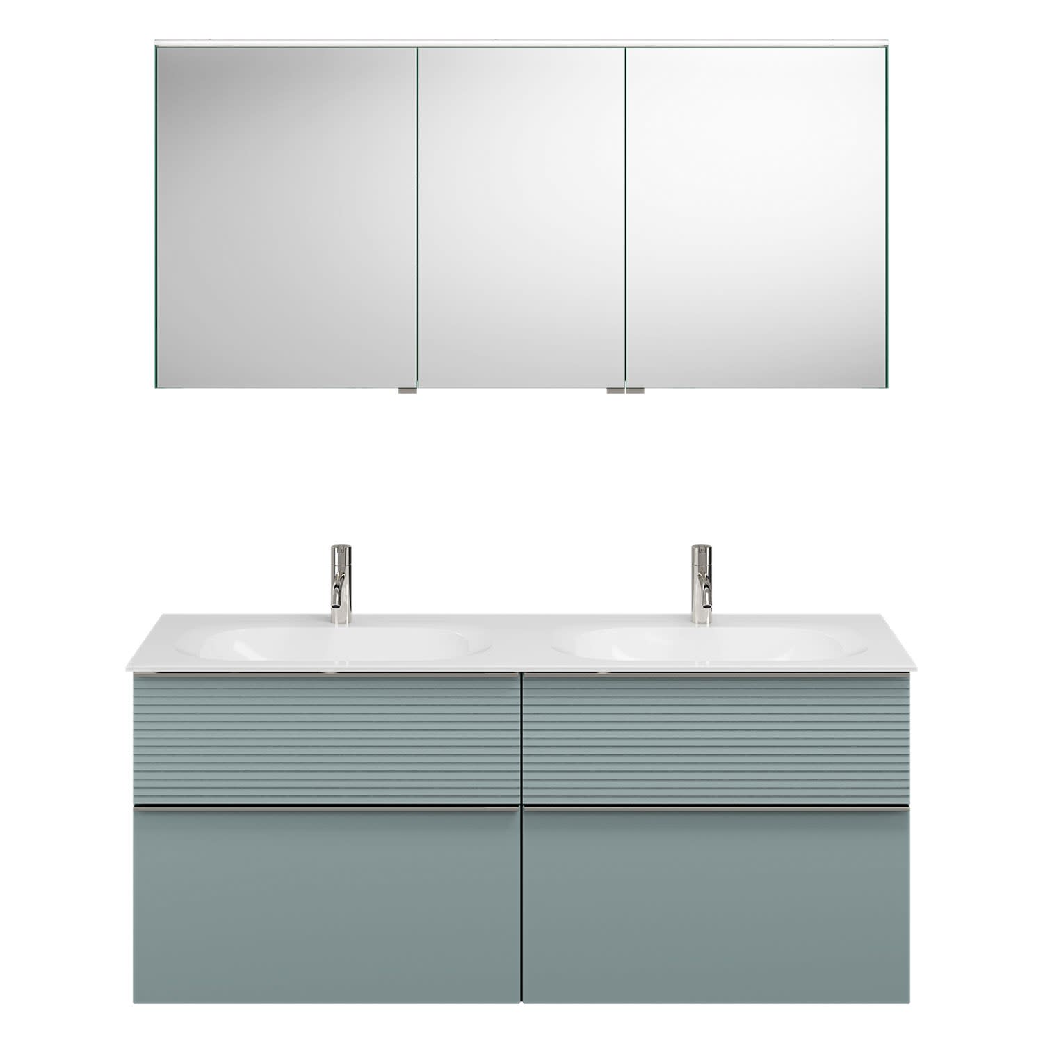 burgbad Fiumo Badmöbel-Set 142 cm mit Doppel-Waschtisch und Unterschrank mit Griff G0146 sowie mit Spiegelschrank