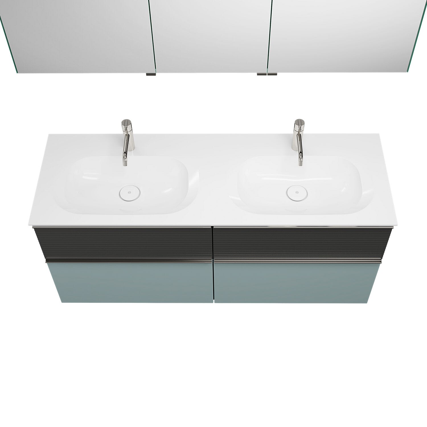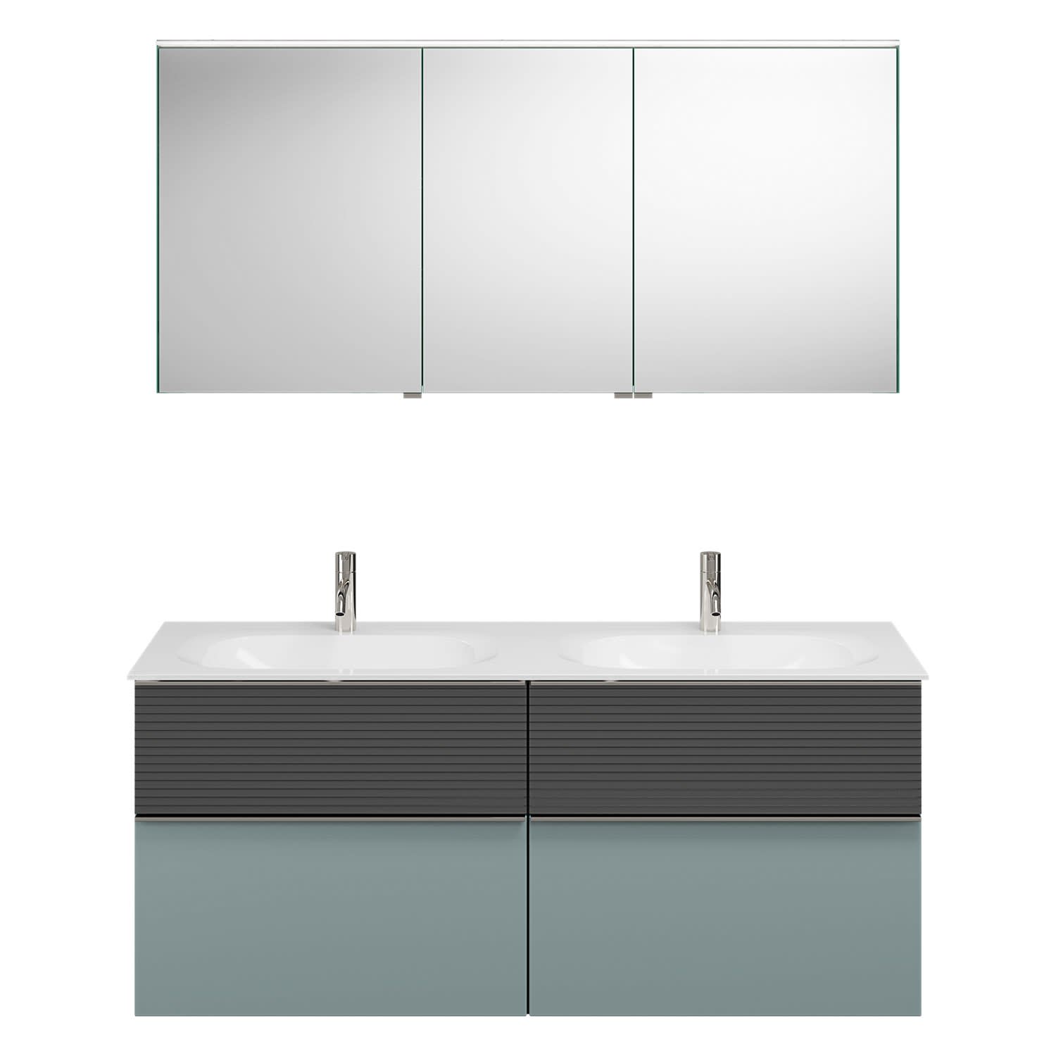 burgbad Fiumo Badmöbel-Set 142 cm mit Doppel-Waschtisch und Unterschrank mit Griff G0146 sowie mit Spiegelschrank