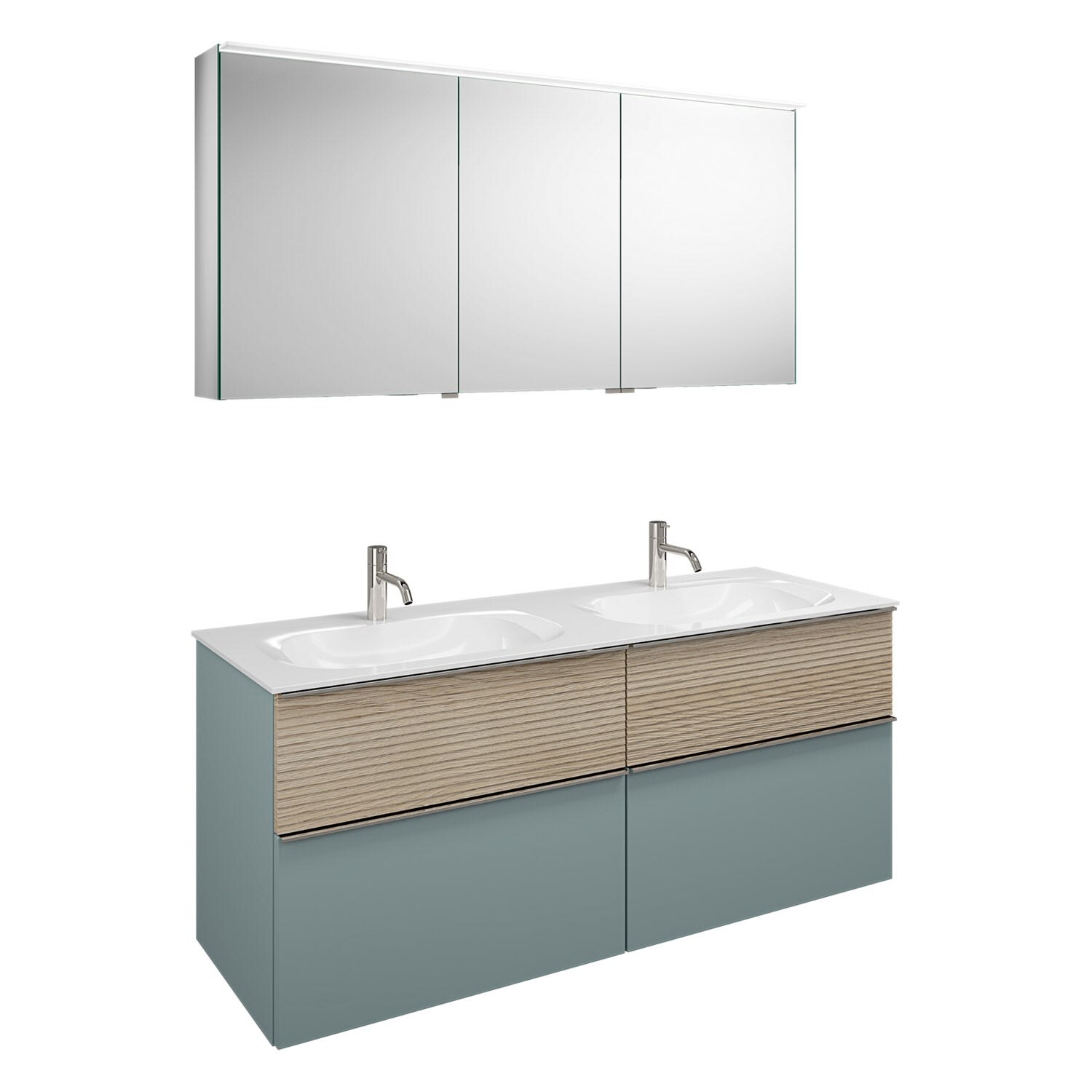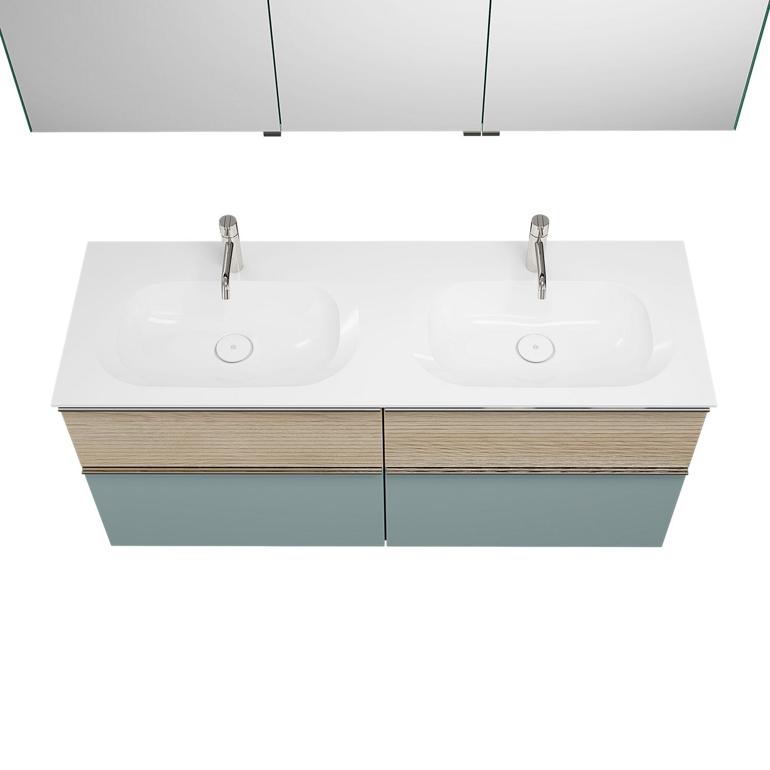burgbad Fiumo Badmöbel-Set 142 cm mit Doppel-Waschtisch und Unterschrank mit Griff G0146 sowie mit Spiegelschrank