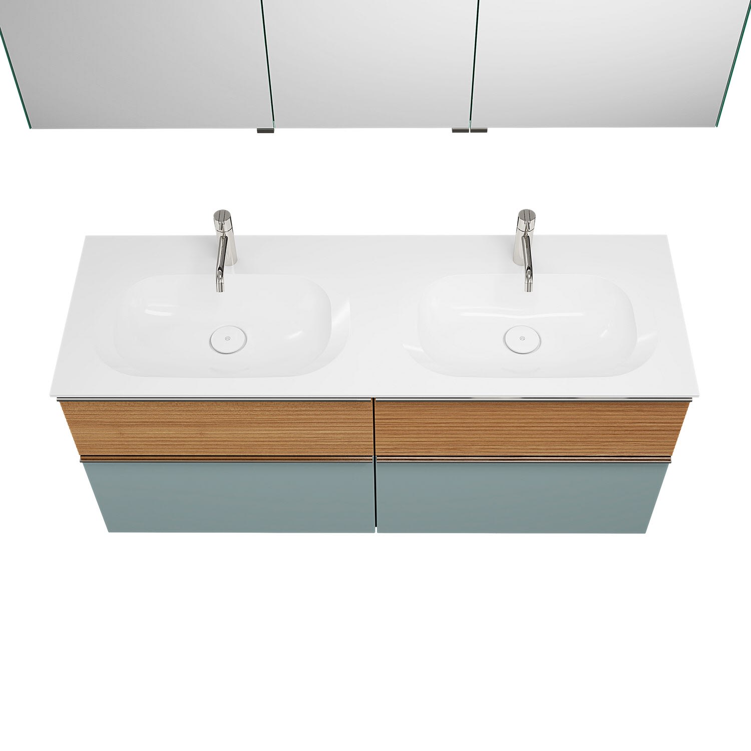 burgbad Fiumo Badmöbel-Set 142 cm mit Doppel-Waschtisch und Unterschrank mit Griff G0146 sowie mit Spiegelschrank