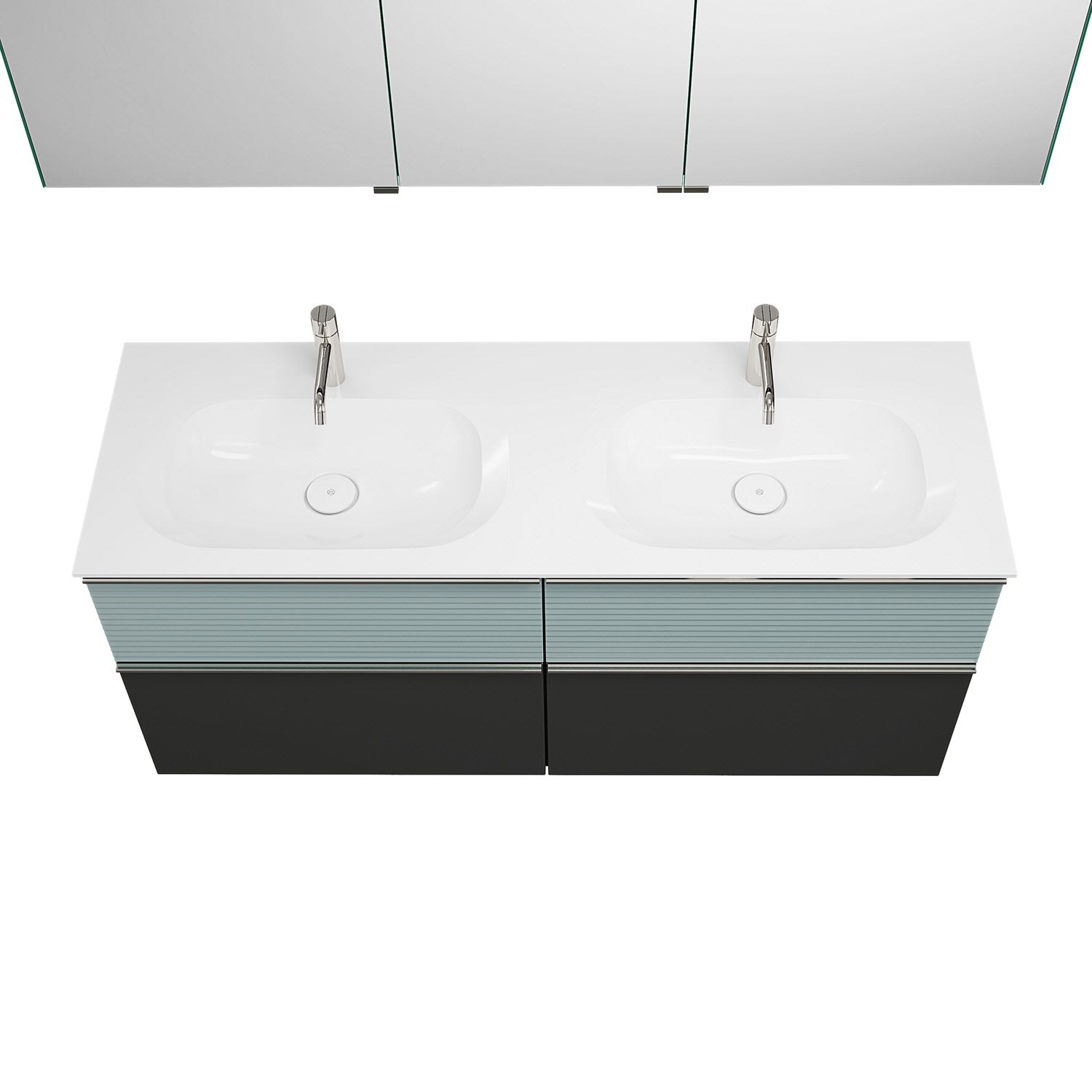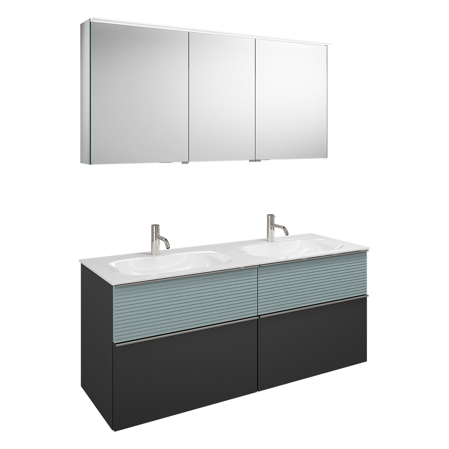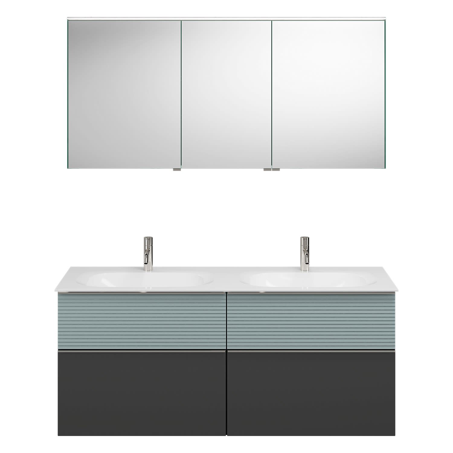 burgbad Fiumo Badmöbel-Set 142 cm mit Doppel-Waschtisch und Unterschrank mit Griff G0146 sowie mit Spiegelschrank