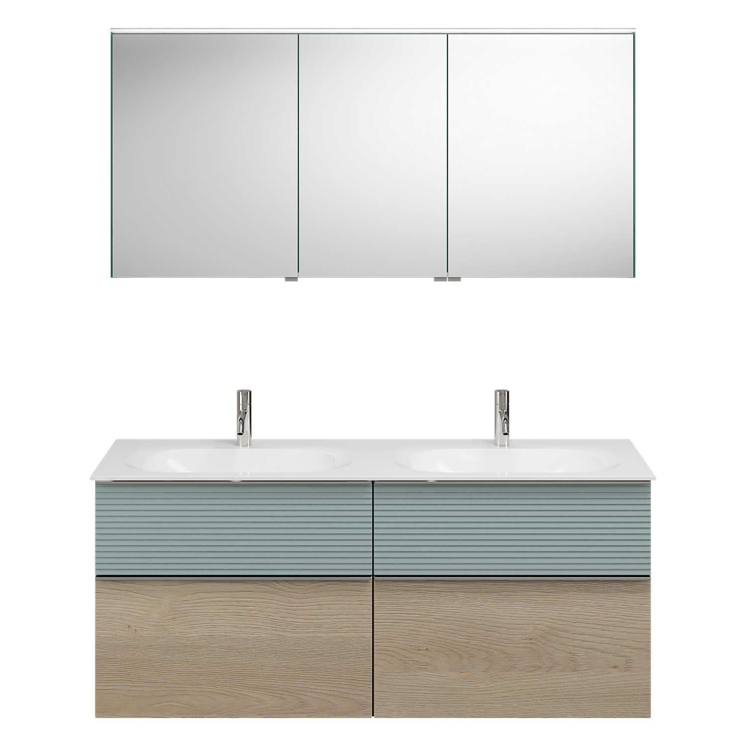 burgbad Fiumo Badmöbel-Set 142 cm mit Doppel-Waschtisch und Unterschrank mit Griff G0146 sowie mit Spiegelschrank