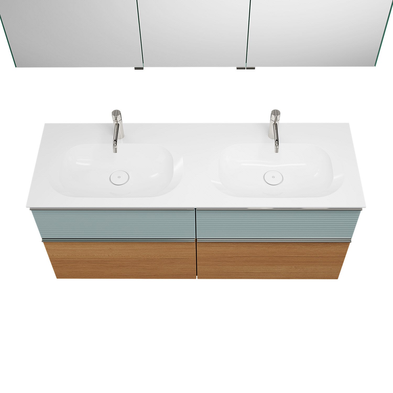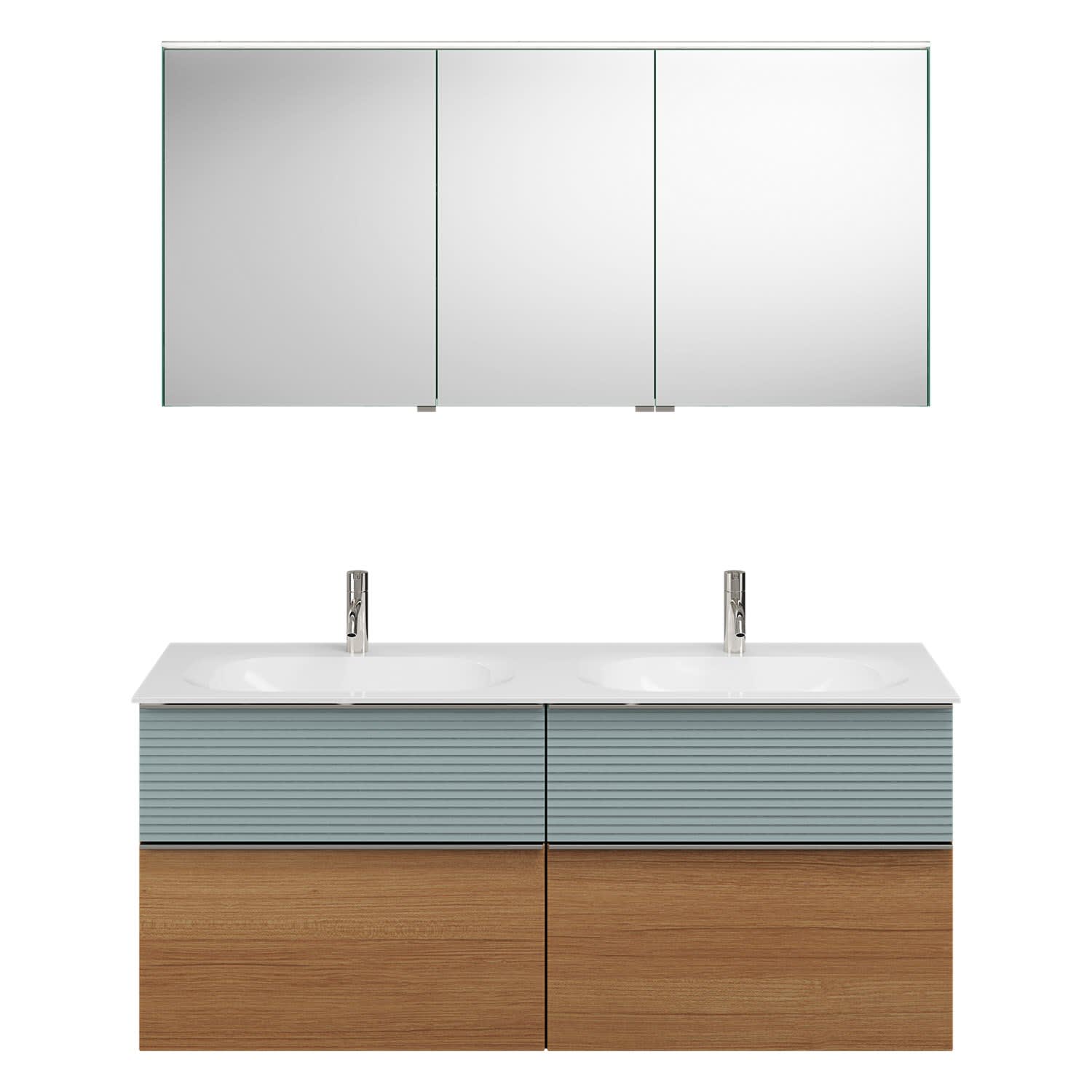burgbad Fiumo Badmöbel-Set 142 cm mit Doppel-Waschtisch und Unterschrank mit Griff G0146 sowie mit Spiegelschrank