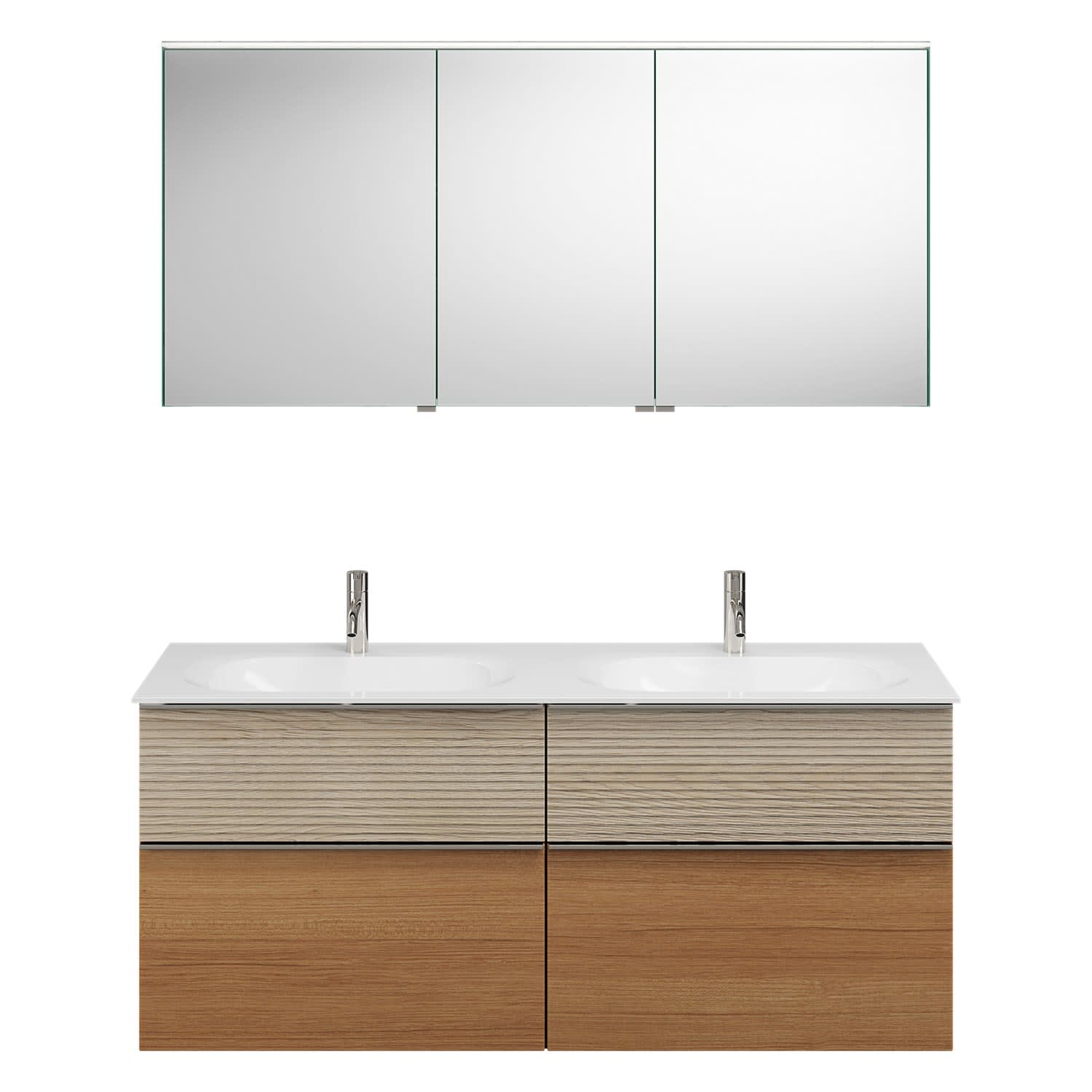 burgbad Fiumo Badmöbel-Set 142 cm mit Doppel-Waschtisch und Unterschrank mit Griff G0146 sowie mit Spiegelschrank