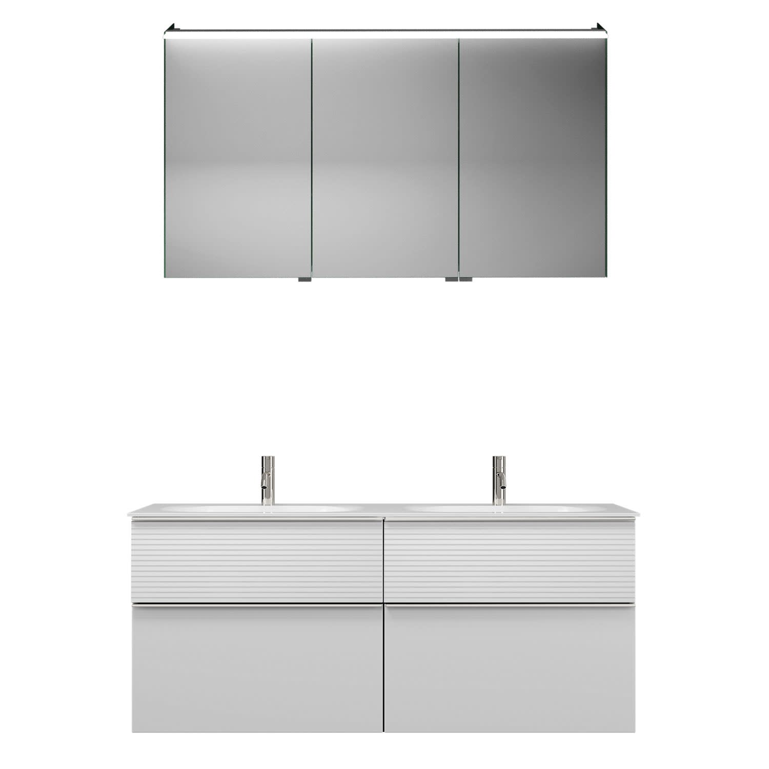 burgbad Fiumo Badmöbel-Set 142 cm mit Doppel-Waschtisch und Unterschrank mit Griff G0223 sowie mit Spiegelschrank