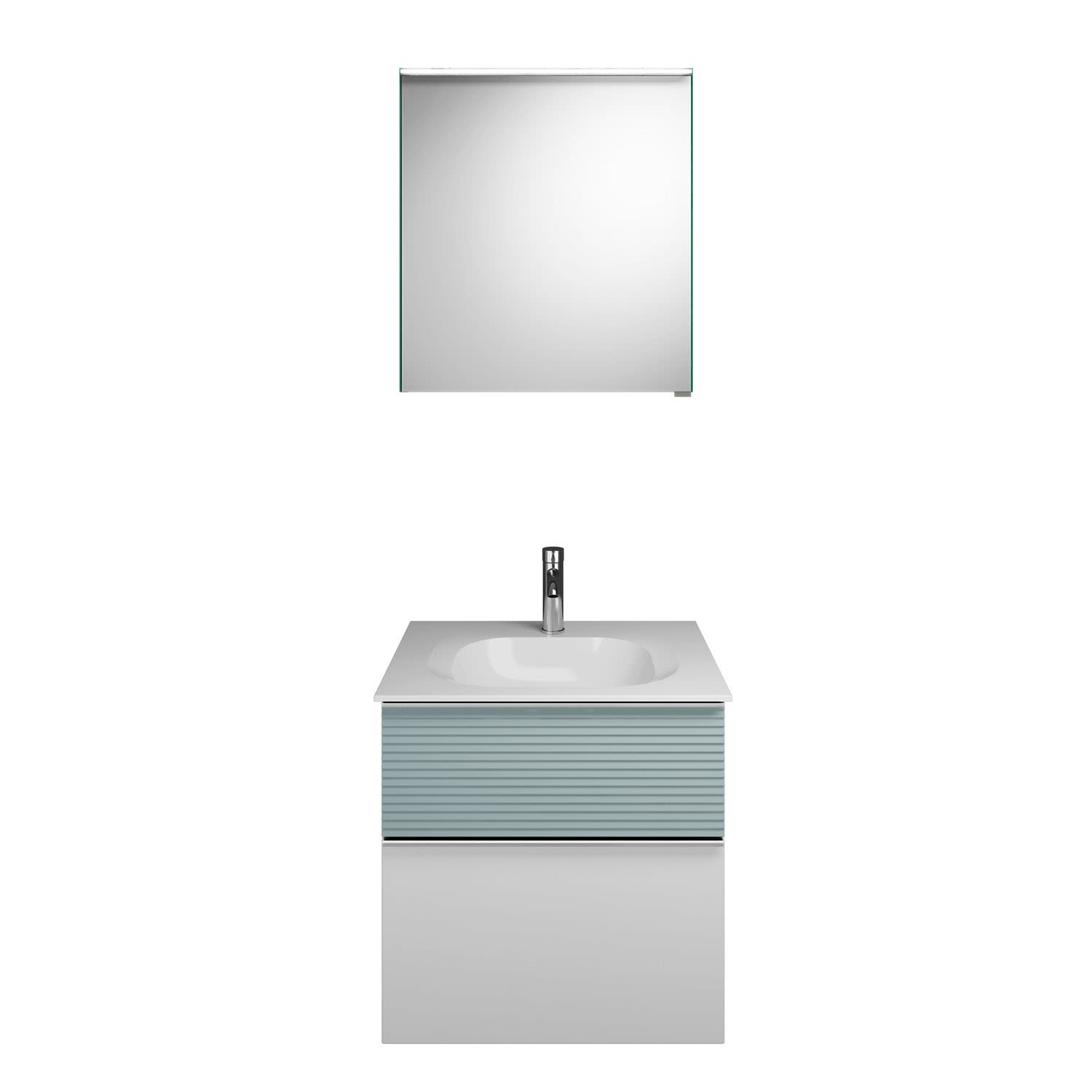 burgbad Fiumo Badmöbel-Set 62 cm mit Waschtisch und Unterschrank mit Griff G0146 sowie mit Spiegelschrank mit Türanschlag links