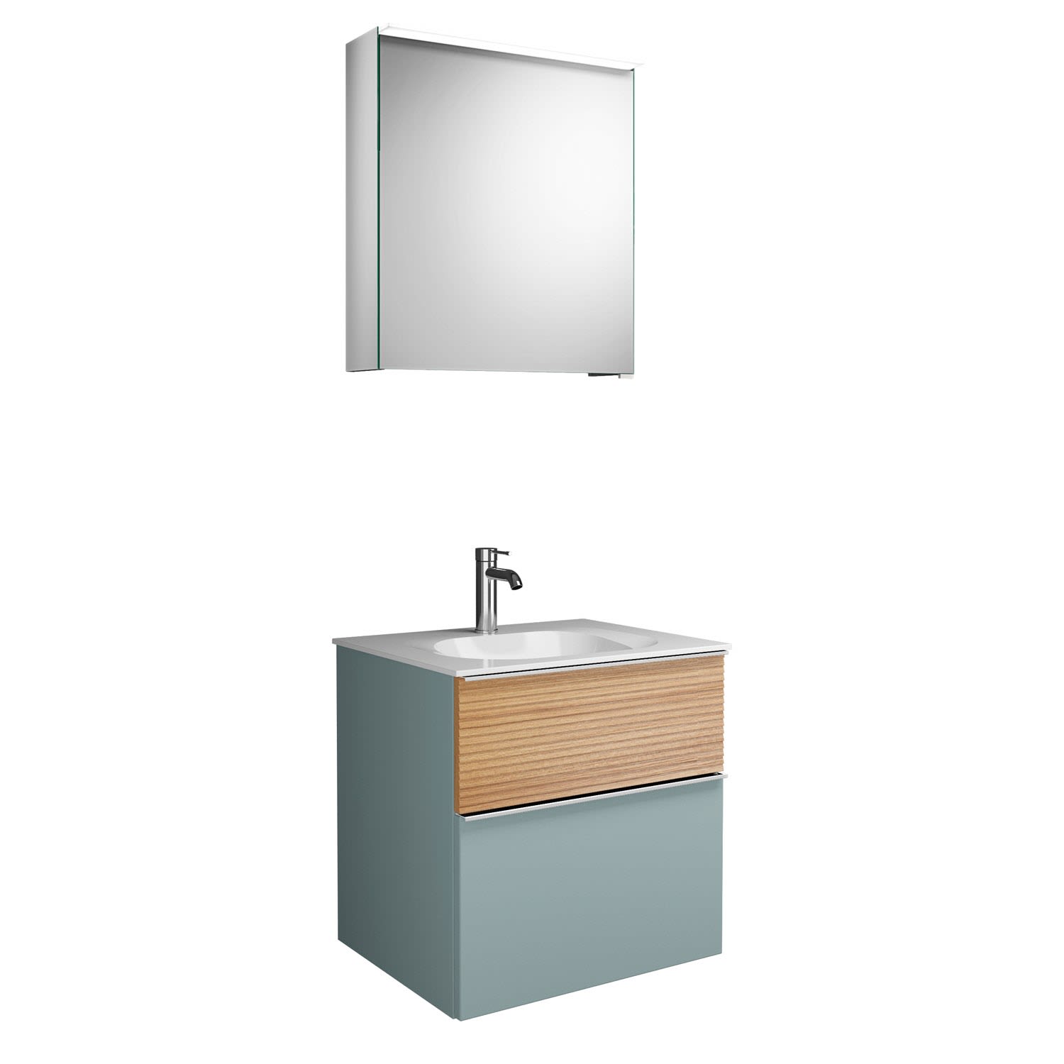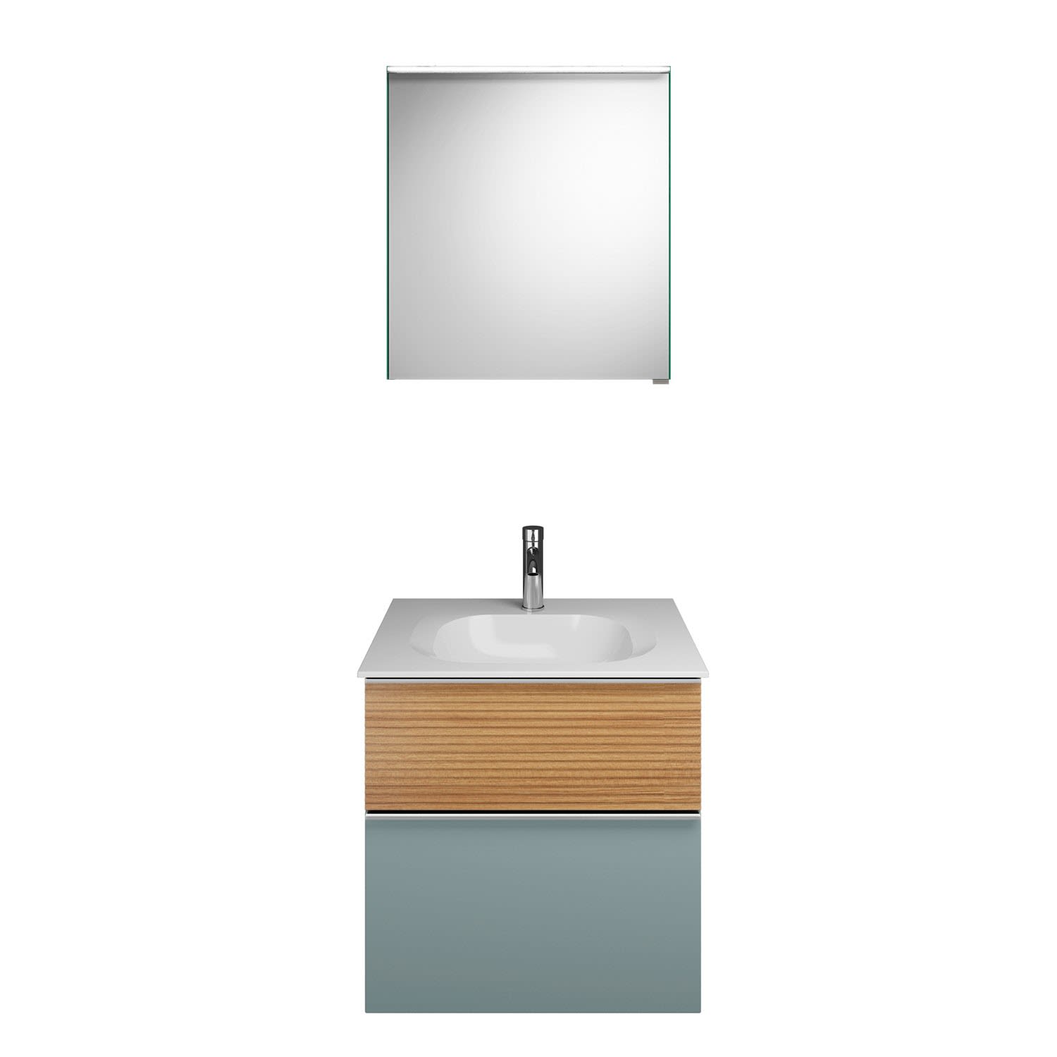 burgbad Fiumo Badmöbel-Set 62 cm mit Waschtisch und Unterschrank mit Griff G0146 sowie mit Spiegelschrank mit Türanschlag links