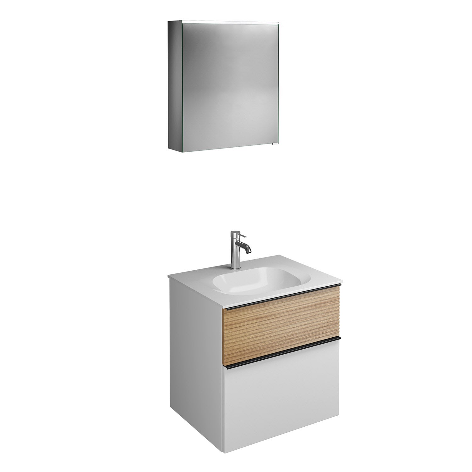 burgbad Fiumo Badmöbel-Set 62 cm mit Waschtisch und Unterschrank mit Griff G0200 sowie mit Spiegelschrank mit Türanschlag links