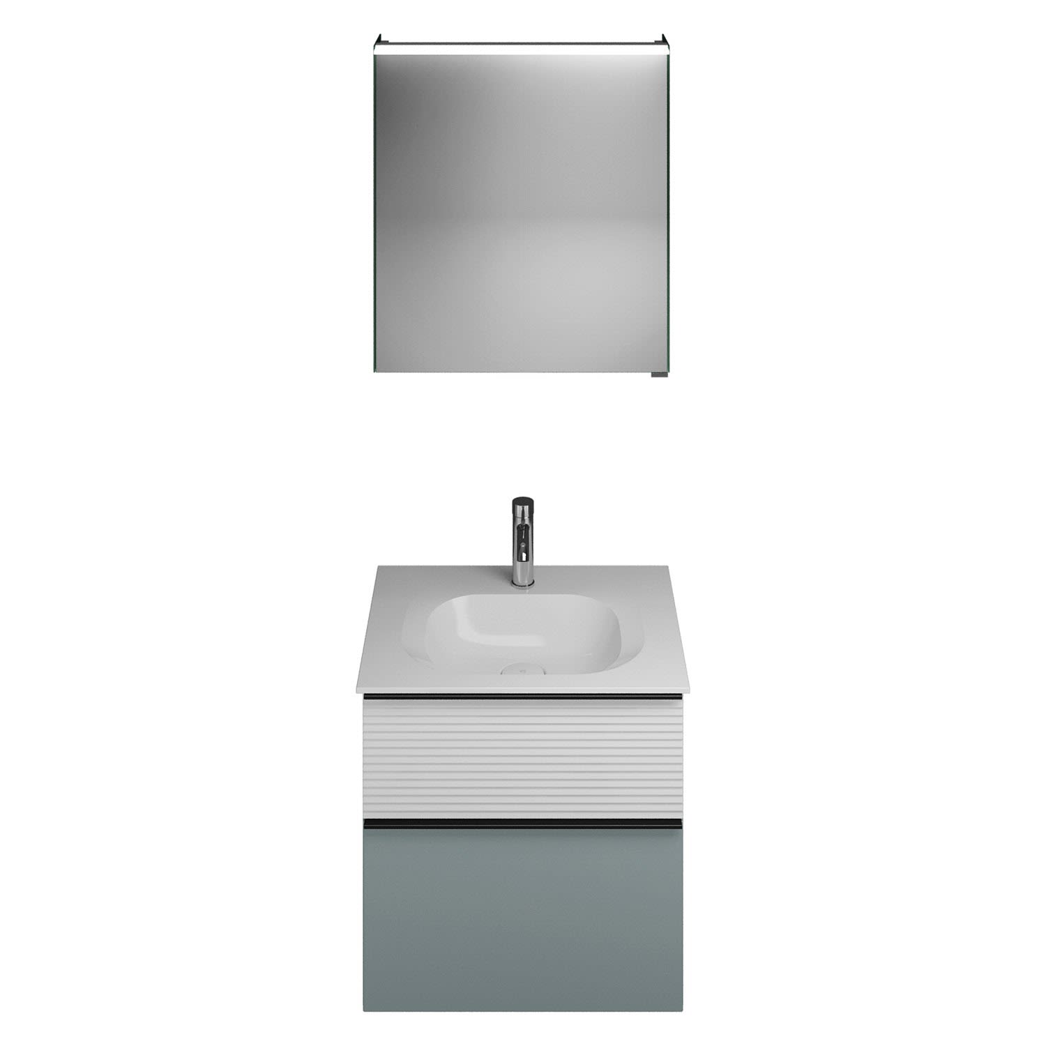 burgbad Fiumo Badmöbel-Set 62 cm mit Waschtisch und Unterschrank mit Griff G0200 sowie mit Spiegelschrank mit Türanschlag links