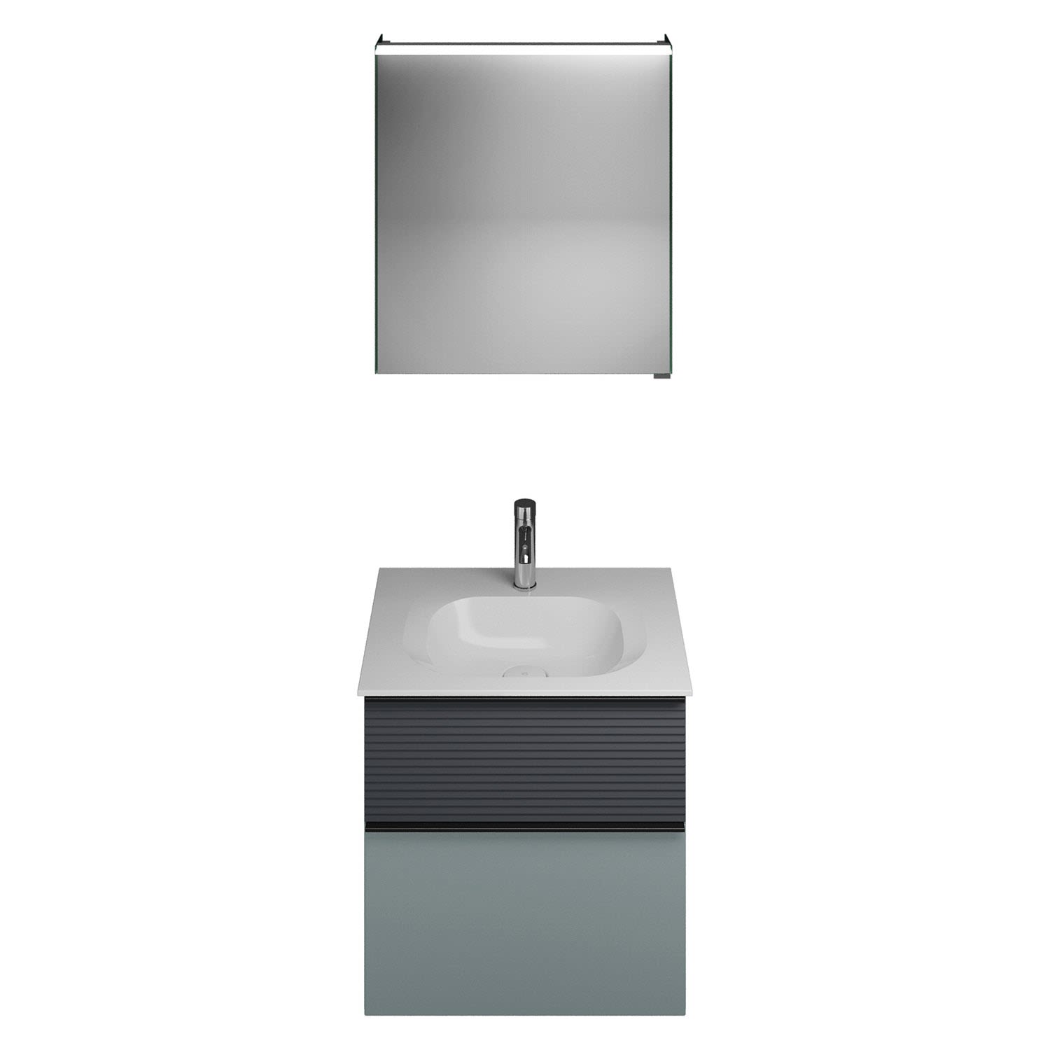 burgbad Fiumo Badmöbel-Set 62 cm mit Waschtisch und Unterschrank mit Griff G0200 sowie mit Spiegelschrank mit Türanschlag links