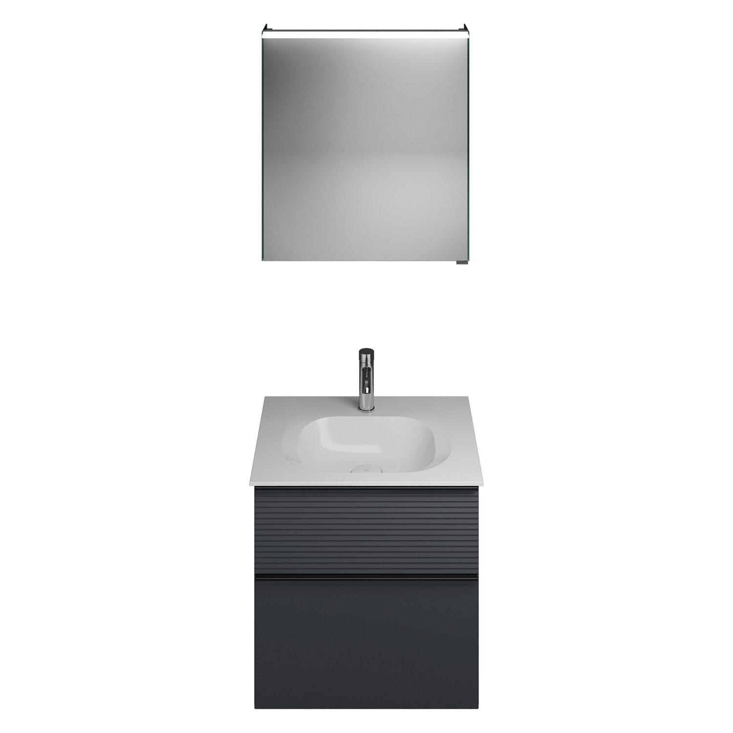 burgbad Fiumo Badmöbel-Set 62 cm mit Waschtisch und Unterschrank mit Griff G0200 sowie mit Spiegelschrank mit Türanschlag links