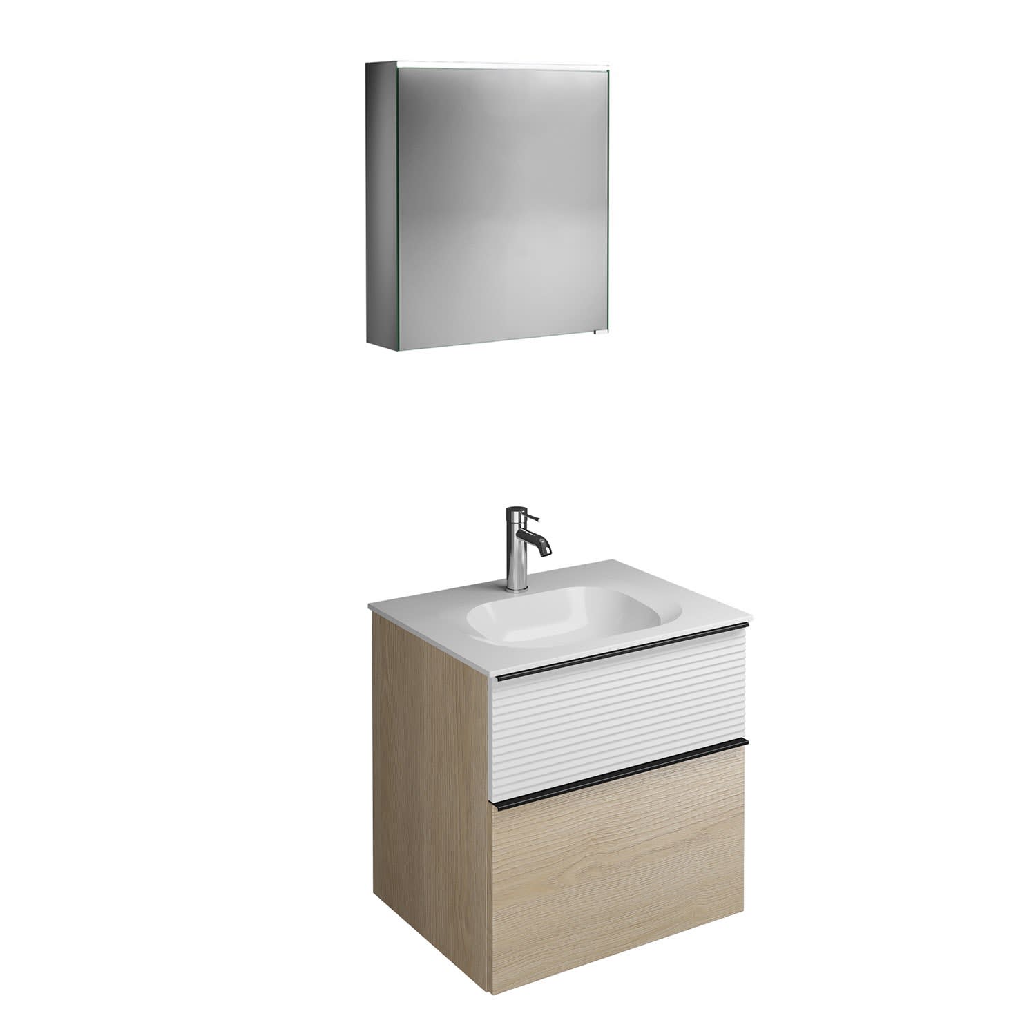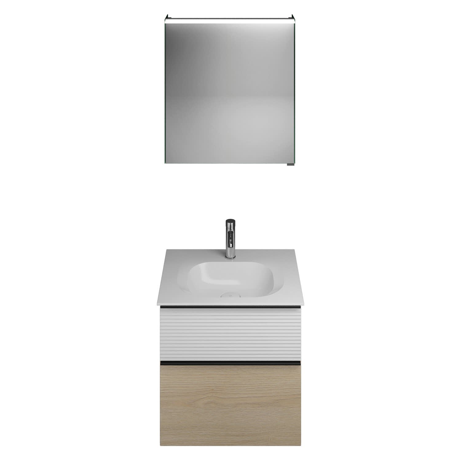 burgbad Fiumo Badmöbel-Set 62 cm mit Waschtisch und Unterschrank mit Griff G0200 sowie mit Spiegelschrank mit Türanschlag links