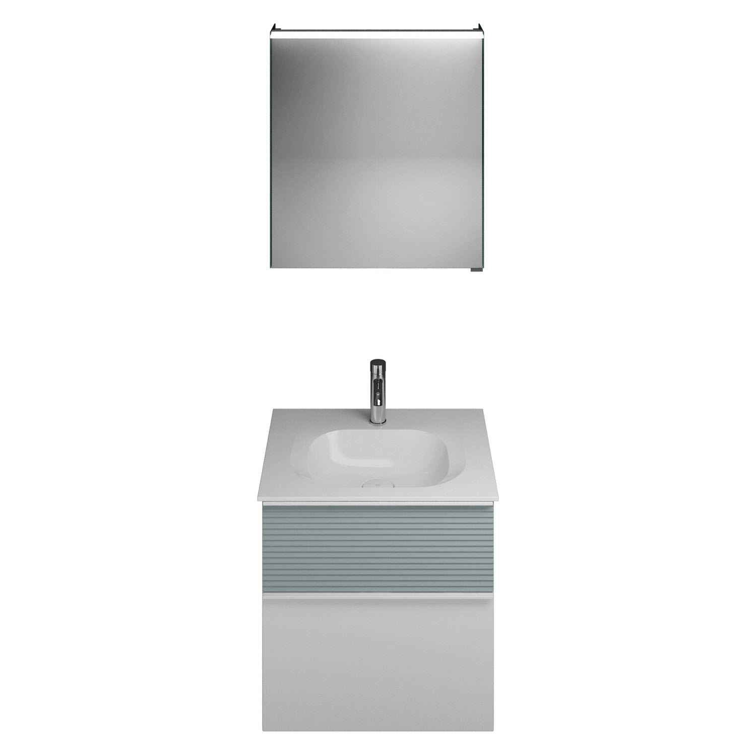 burgbad Fiumo Badmöbel-Set 62 cm mit Waschtisch und Unterschrank mit Griff G0223 sowie mit Spiegelschrank mit Türanschlag links