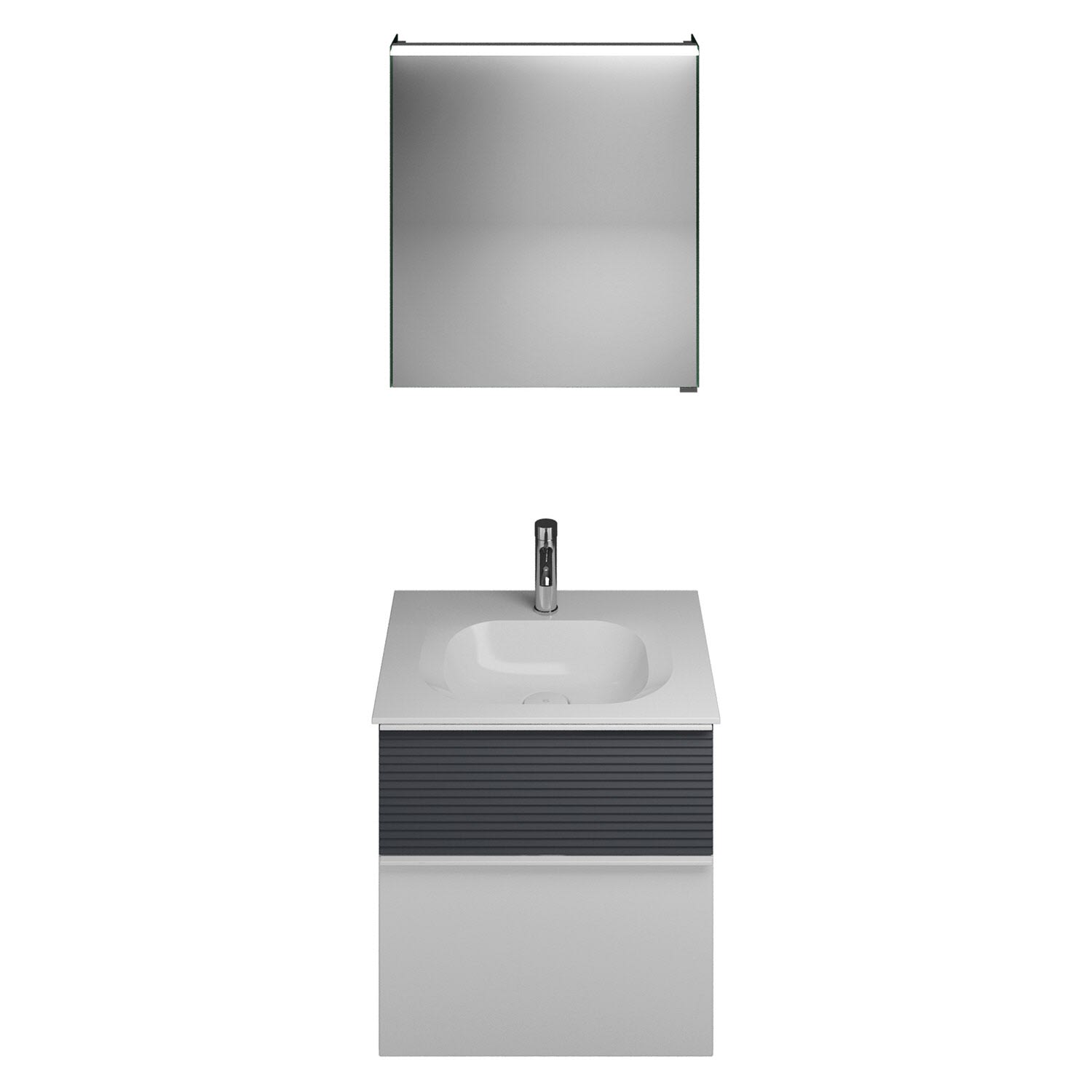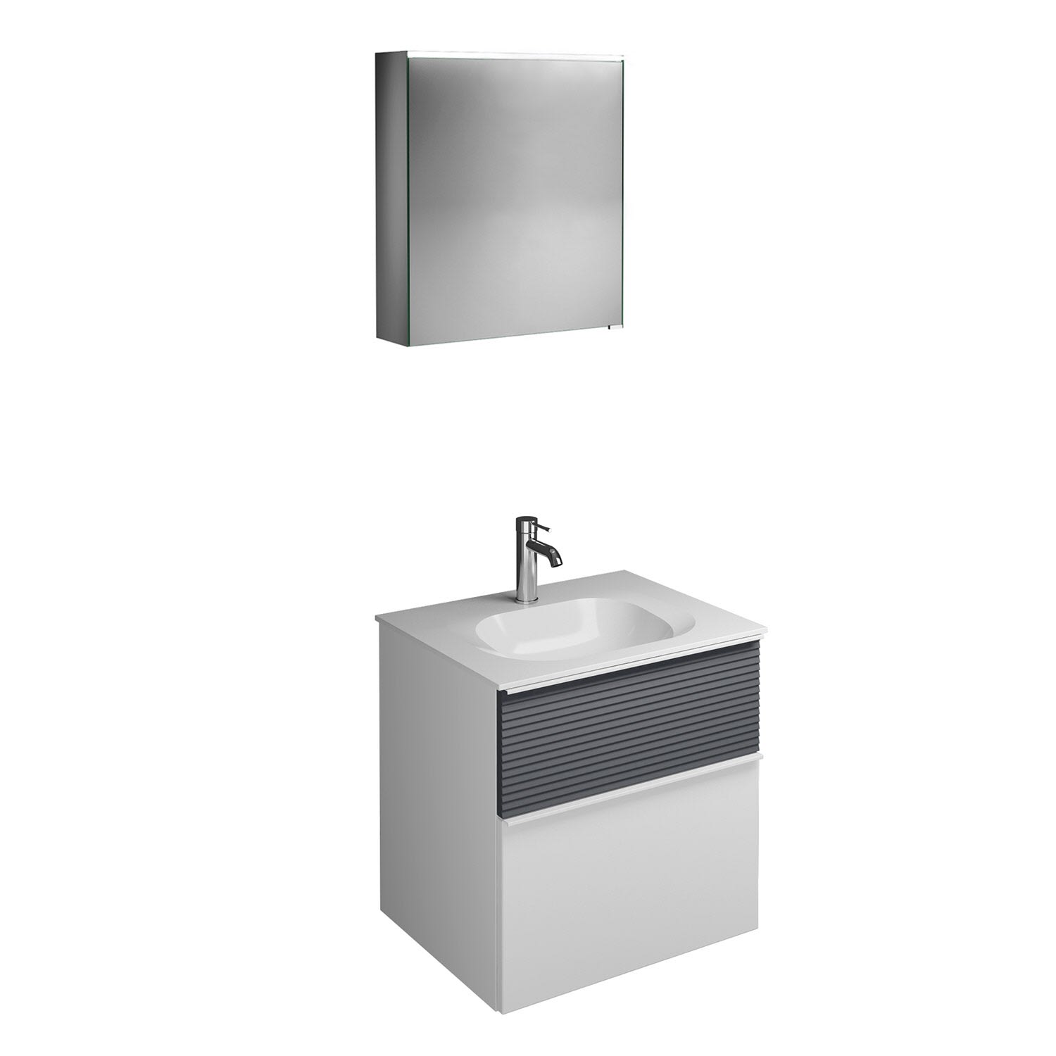 burgbad Fiumo Badmöbel-Set 62 cm mit Waschtisch und Unterschrank mit Griff G0223 sowie mit Spiegelschrank mit Türanschlag links