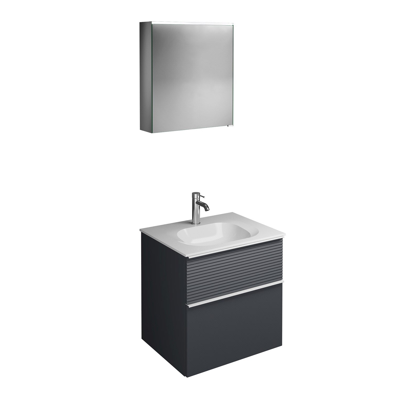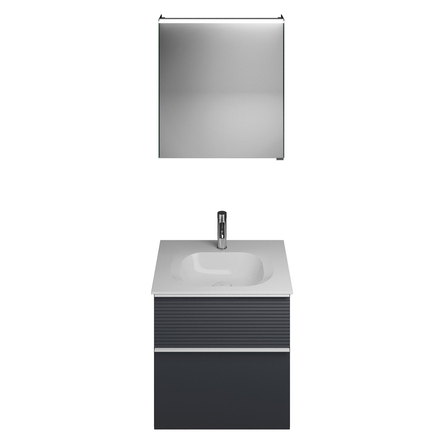 burgbad Fiumo Badmöbel-Set 62 cm mit Waschtisch und Unterschrank mit Griff G0223 sowie mit Spiegelschrank mit Türanschlag links
