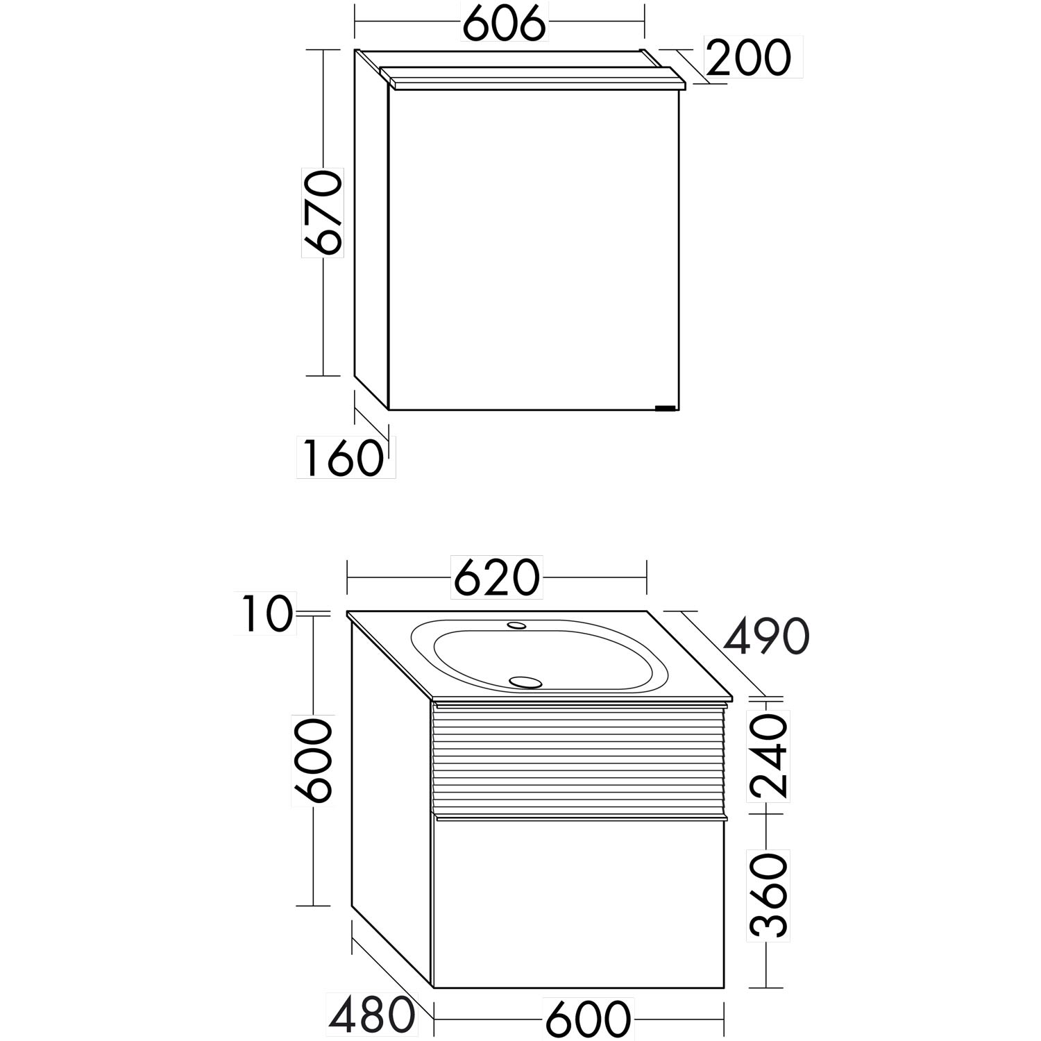 burgbad Fiumo Badmöbel-Set 62 cm mit Waschtisch und Unterschrank mit Griff G0223 sowie mit Spiegelschrank mit Türanschlag links