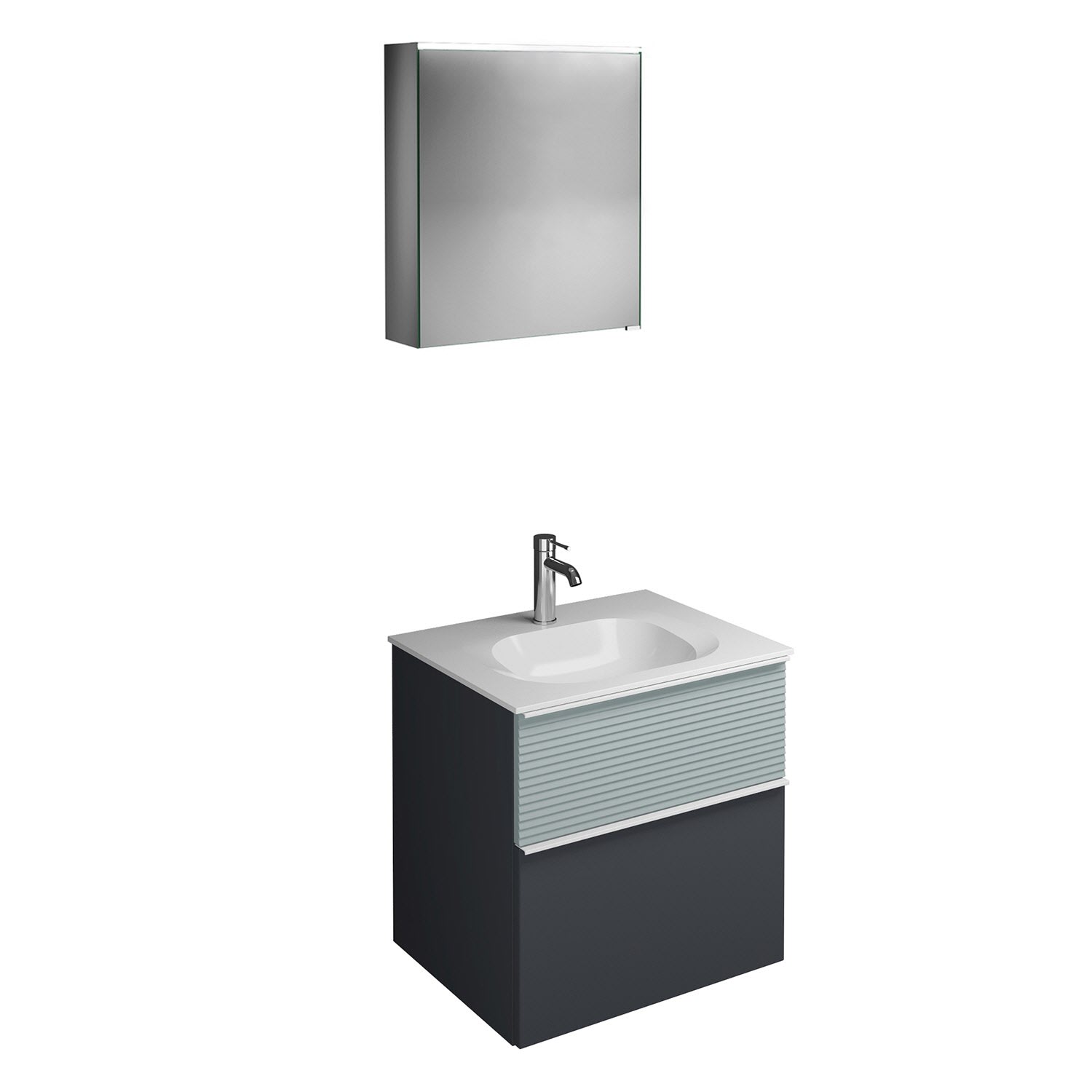 burgbad Fiumo Badmöbel-Set 62 cm mit Waschtisch und Unterschrank mit Griff G0223 sowie mit Spiegelschrank mit Türanschlag links