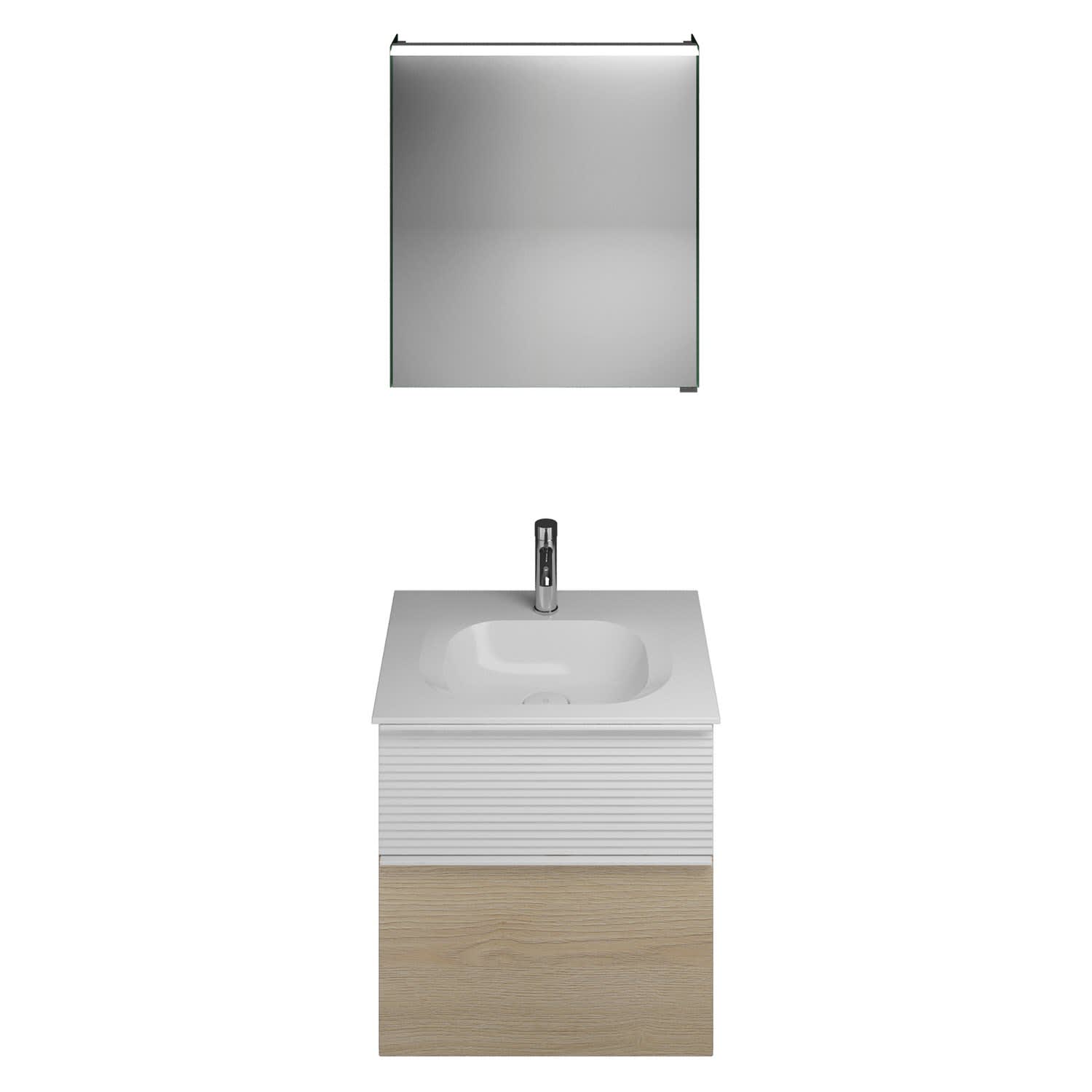 burgbad Fiumo Badmöbel-Set 62 cm mit Waschtisch und Unterschrank mit Griff G0223 sowie mit Spiegelschrank mit Türanschlag links