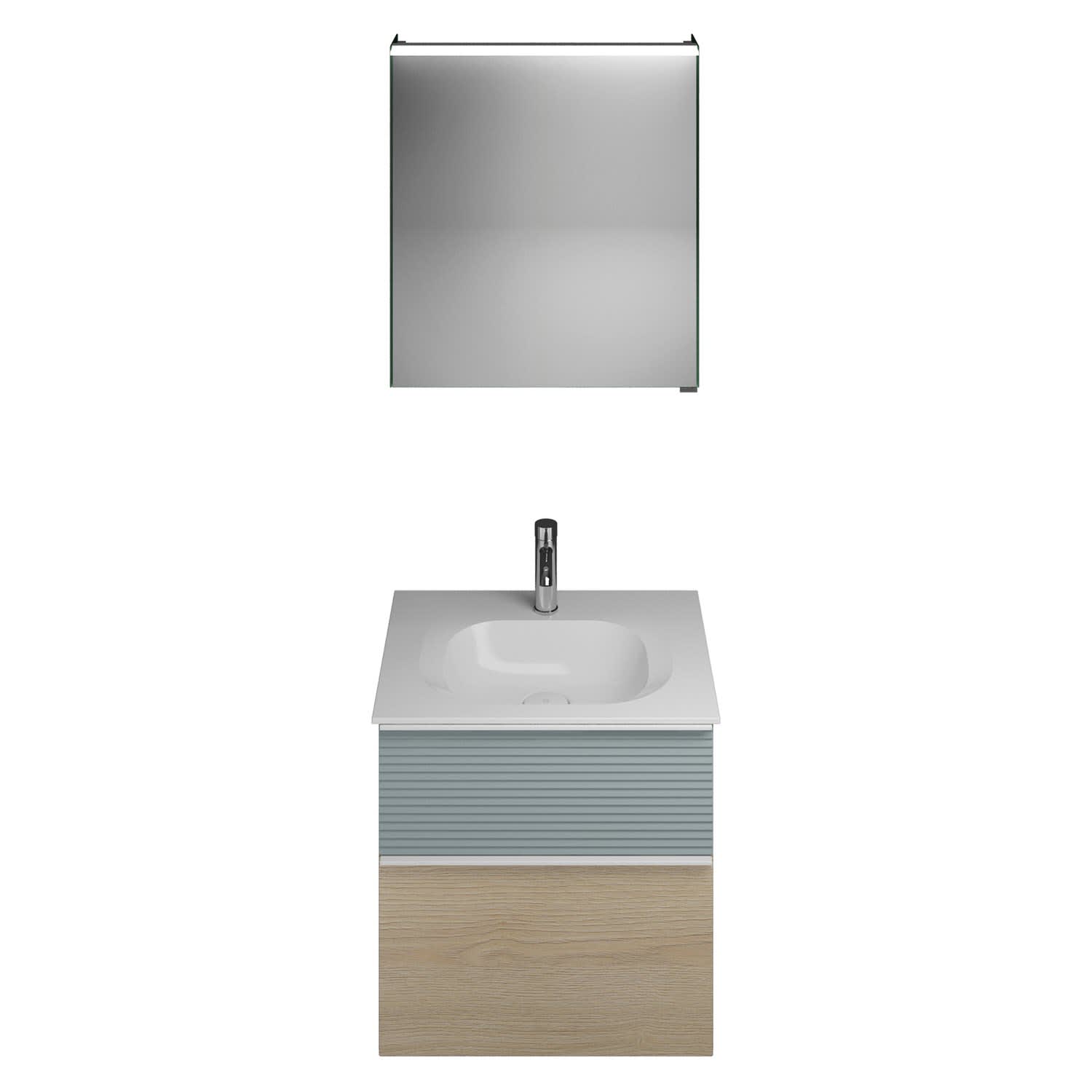 burgbad Fiumo Badmöbel-Set 62 cm mit Waschtisch und Unterschrank mit Griff G0223 sowie mit Spiegelschrank mit Türanschlag links