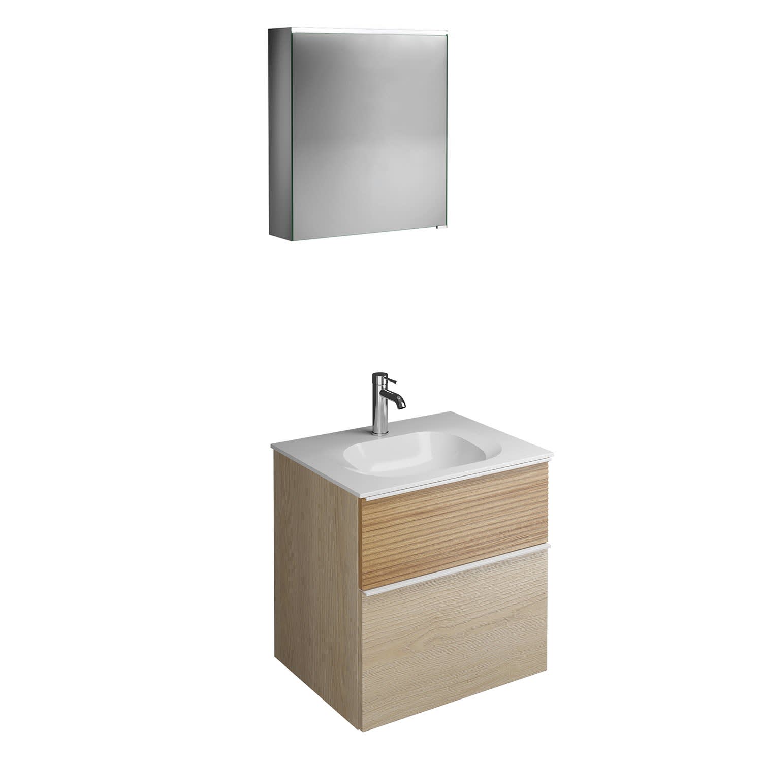 burgbad Fiumo Badmöbel-Set 62 cm mit Waschtisch und Unterschrank mit Griff G0223 sowie mit Spiegelschrank mit Türanschlag links