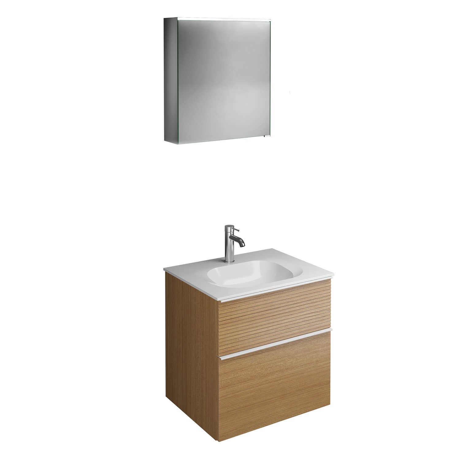burgbad Fiumo Badmöbel-Set 62 cm mit Waschtisch und Unterschrank mit Griff G0223 sowie mit Spiegelschrank mit Türanschlag links