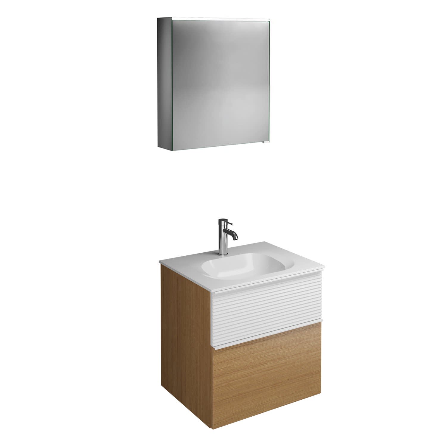 burgbad Fiumo Badmöbel-Set 62 cm mit Waschtisch und Unterschrank mit Griff G0223 sowie mit Spiegelschrank mit Türanschlag links