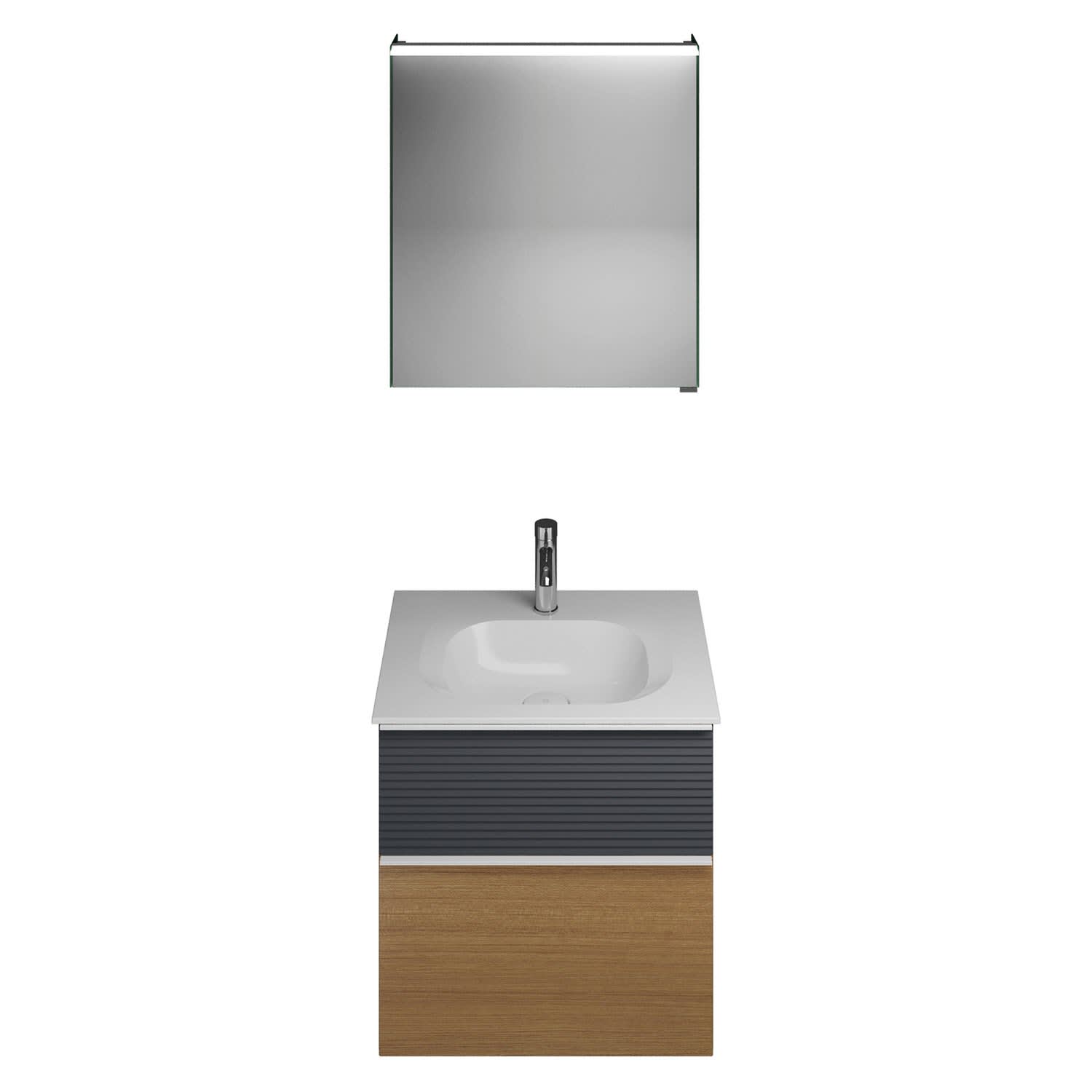 burgbad Fiumo Badmöbel-Set 62 cm mit Waschtisch und Unterschrank mit Griff G0223 sowie mit Spiegelschrank mit Türanschlag links