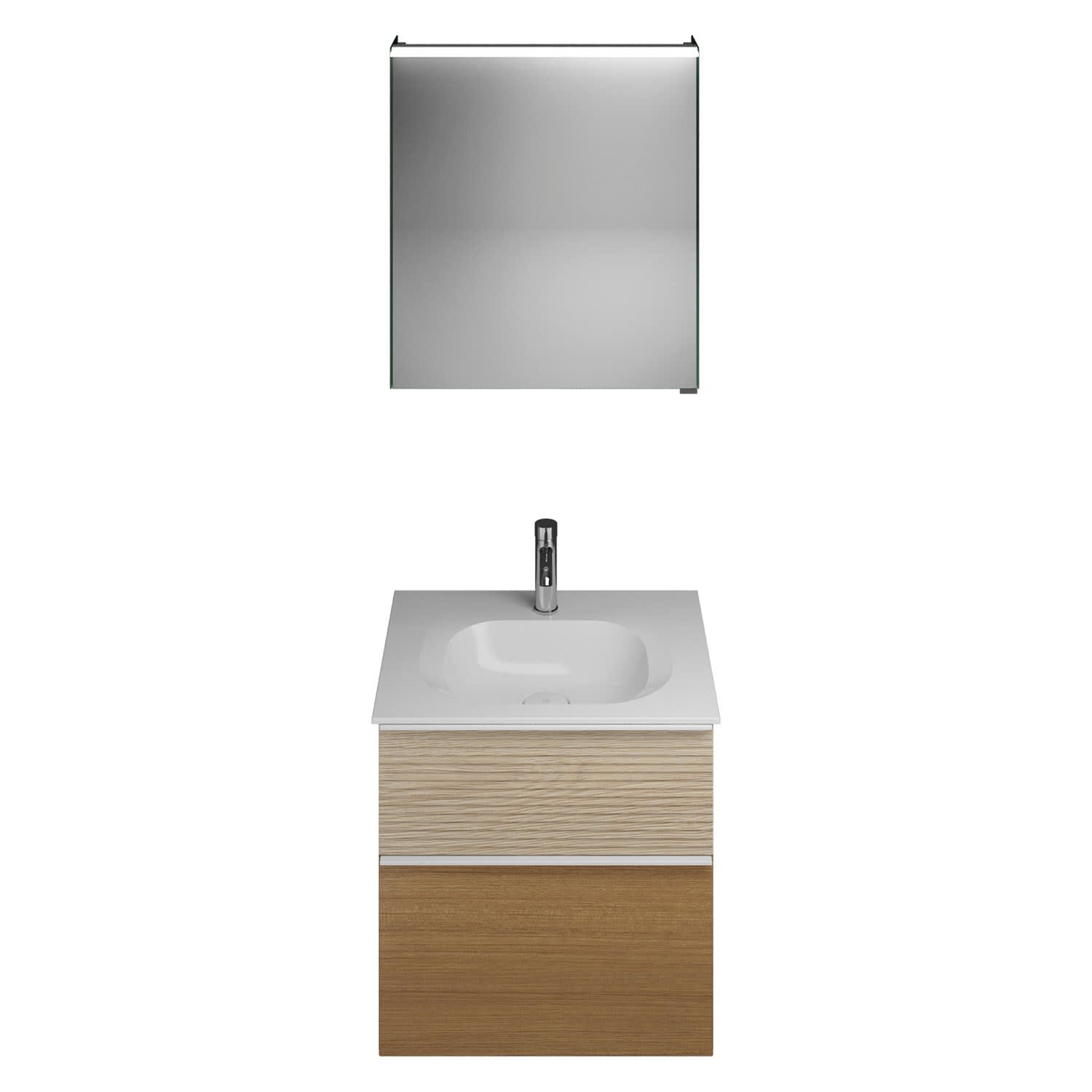 burgbad Fiumo Badmöbel-Set 62 cm mit Waschtisch und Unterschrank mit Griff G0223 sowie mit Spiegelschrank mit Türanschlag links