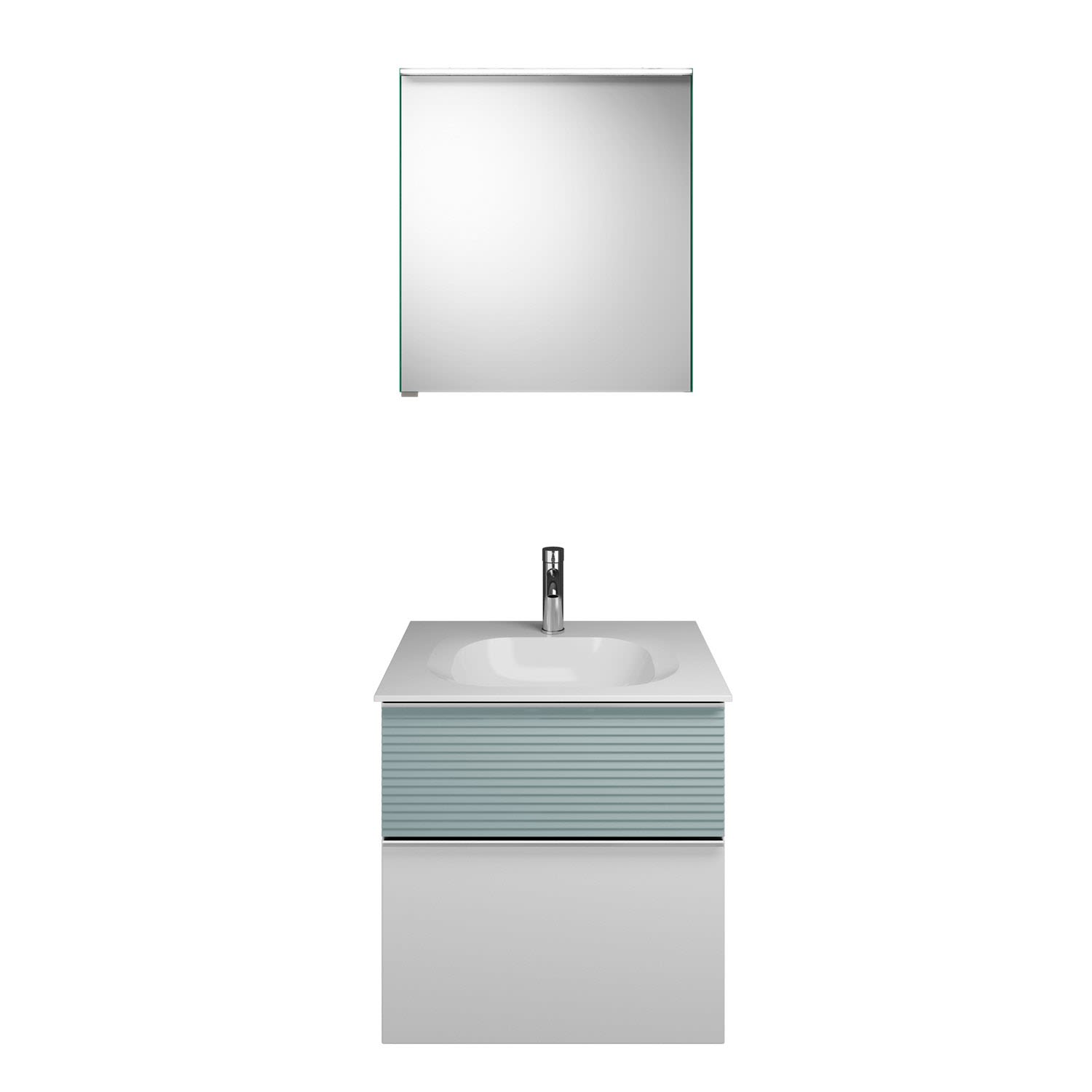 burgbad Fiumo Badmöbel-Set 62 cm mit Waschtisch und Unterschrank mit Griff G0146 sowie mit Spiegelschrank mit Türanschlag rechts