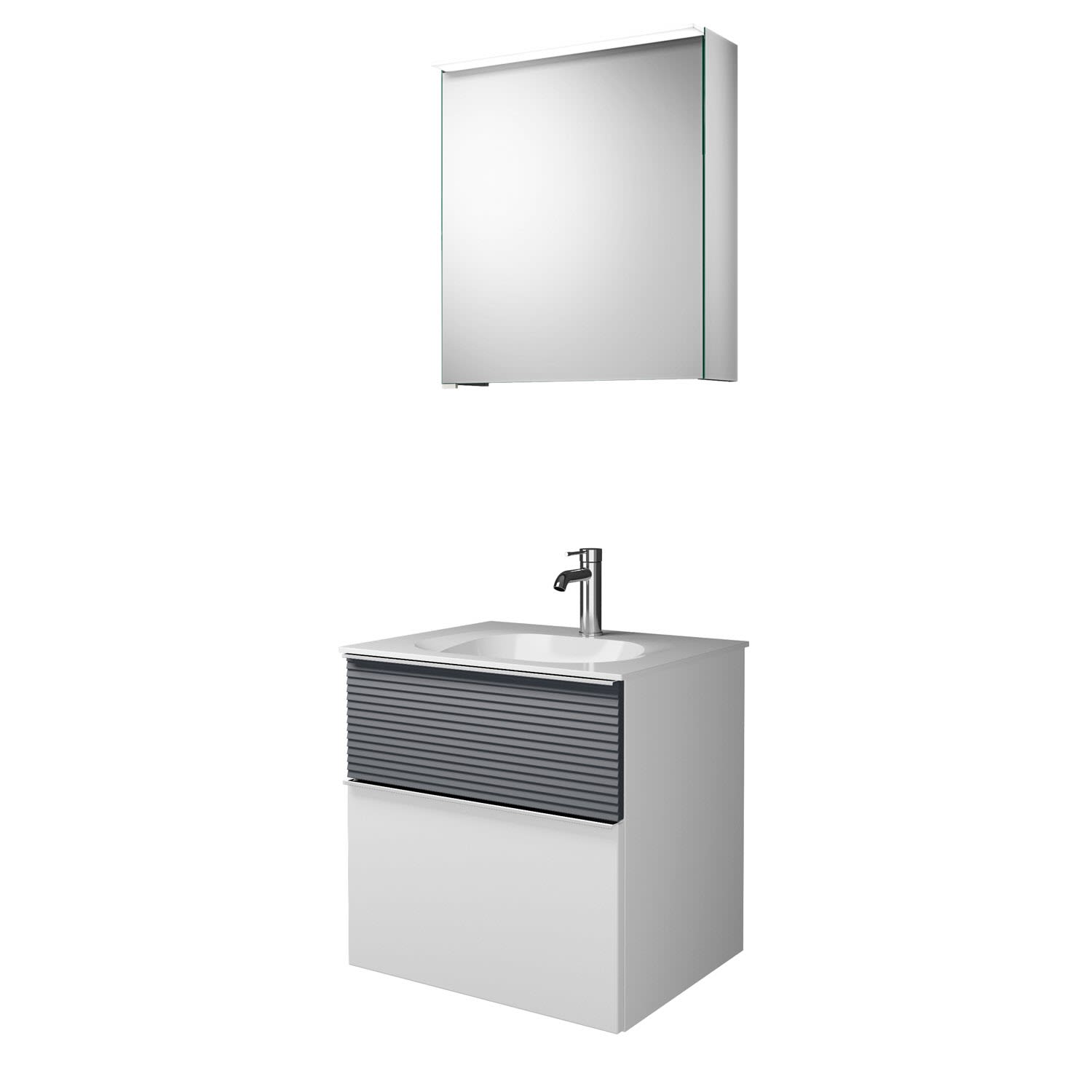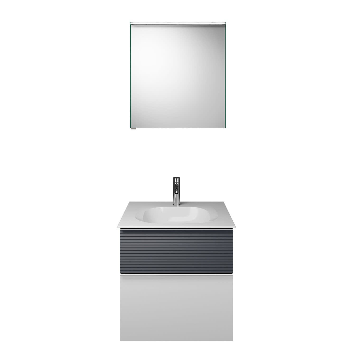 burgbad Fiumo Badmöbel-Set 62 cm mit Waschtisch und Unterschrank mit Griff G0146 sowie mit Spiegelschrank mit Türanschlag rechts