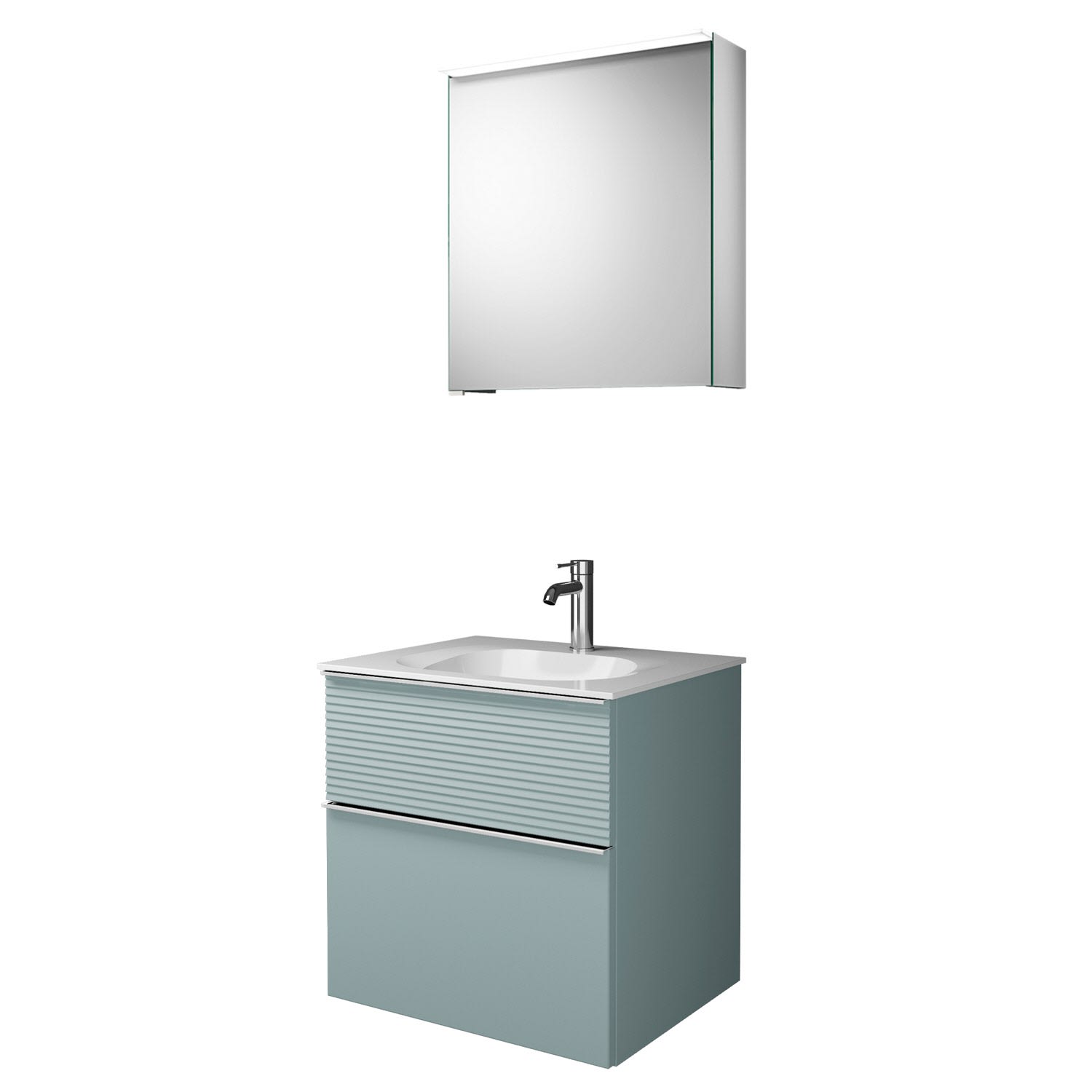 burgbad Fiumo Badmöbel-Set 62 cm mit Waschtisch und Unterschrank mit Griff G0146 sowie mit Spiegelschrank mit Türanschlag rechts