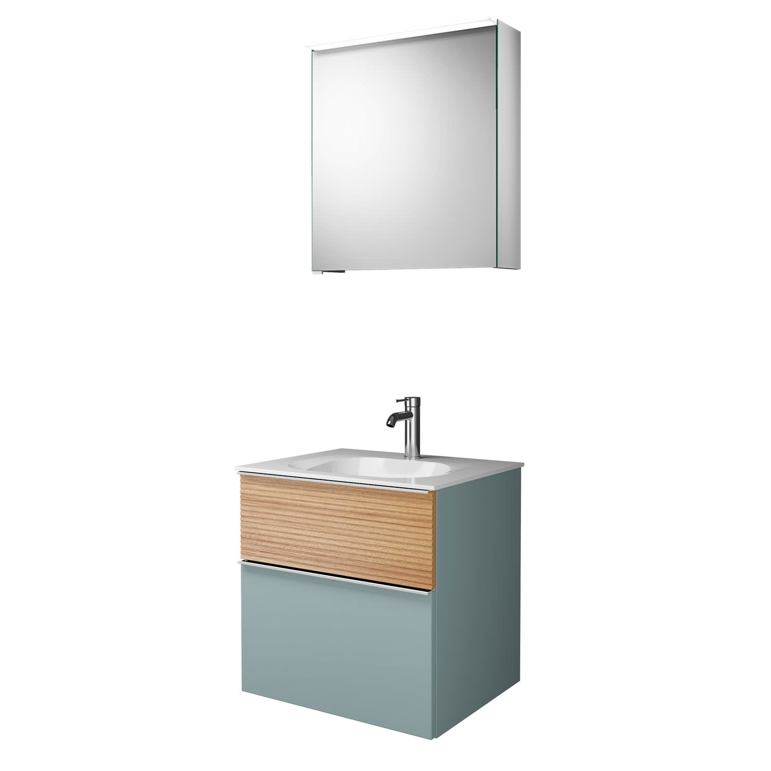 burgbad Fiumo Badmöbel-Set 62 cm mit Waschtisch und Unterschrank mit Griff G0146 sowie mit Spiegelschrank mit Türanschlag rechts