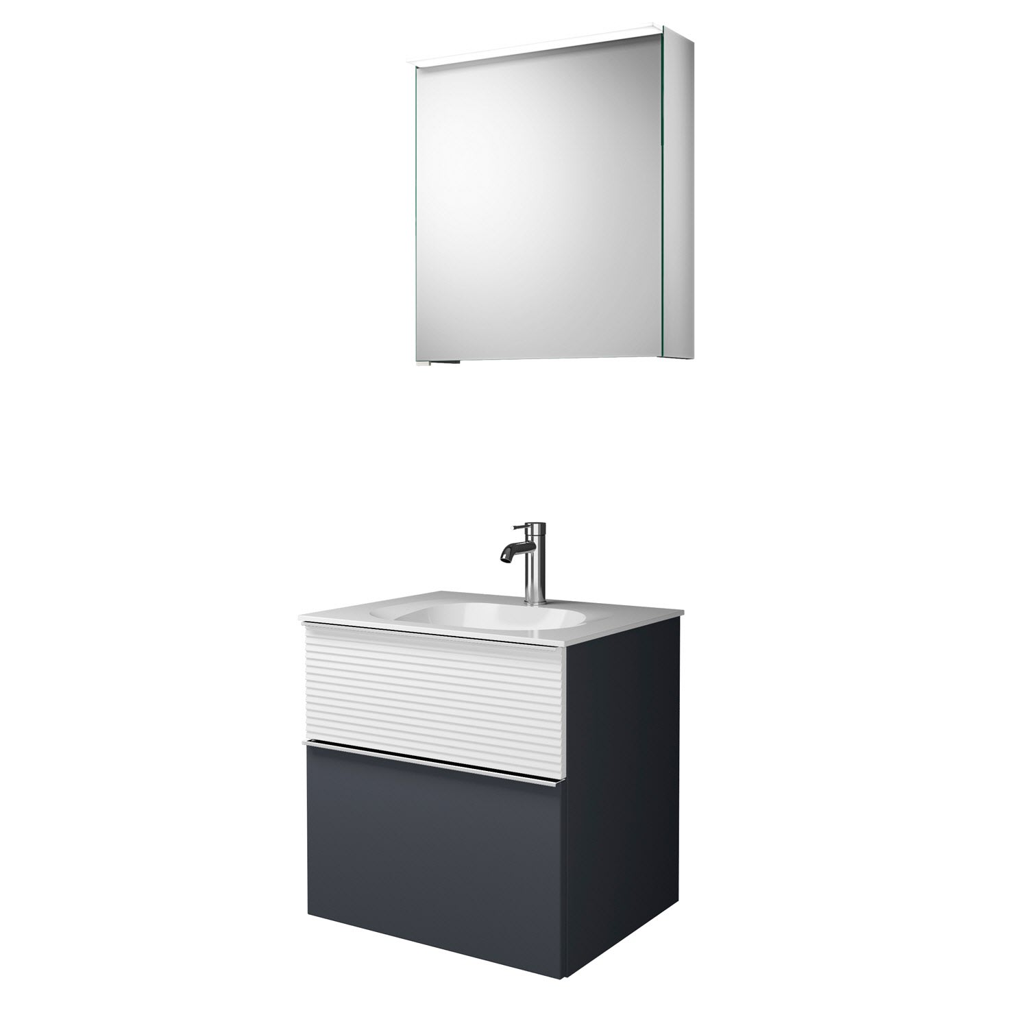 burgbad Fiumo Badmöbel-Set 62 cm mit Waschtisch und Unterschrank mit Griff G0146 sowie mit Spiegelschrank mit Türanschlag rechts