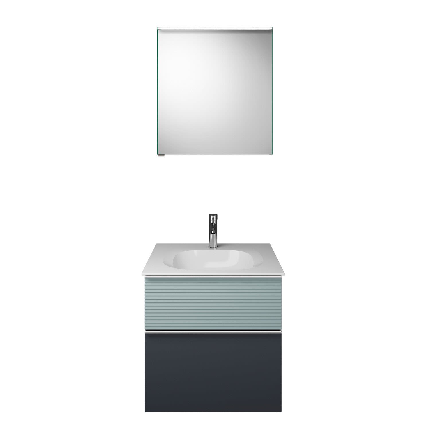 burgbad Fiumo Badmöbel-Set 62 cm mit Waschtisch und Unterschrank mit Griff G0146 sowie mit Spiegelschrank mit Türanschlag rechts