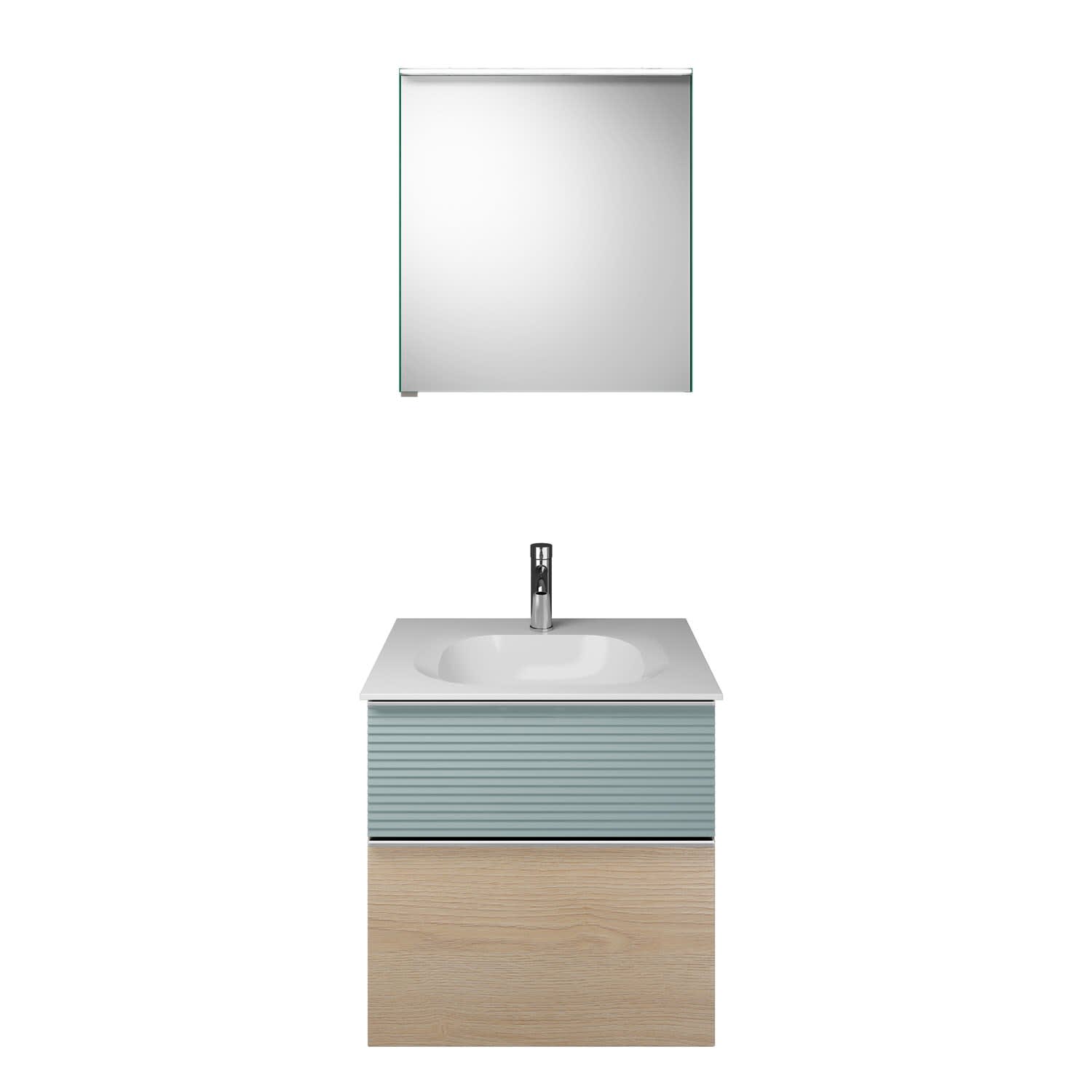 burgbad Fiumo Badmöbel-Set 62 cm mit Waschtisch und Unterschrank mit Griff G0146 sowie mit Spiegelschrank mit Türanschlag rechts