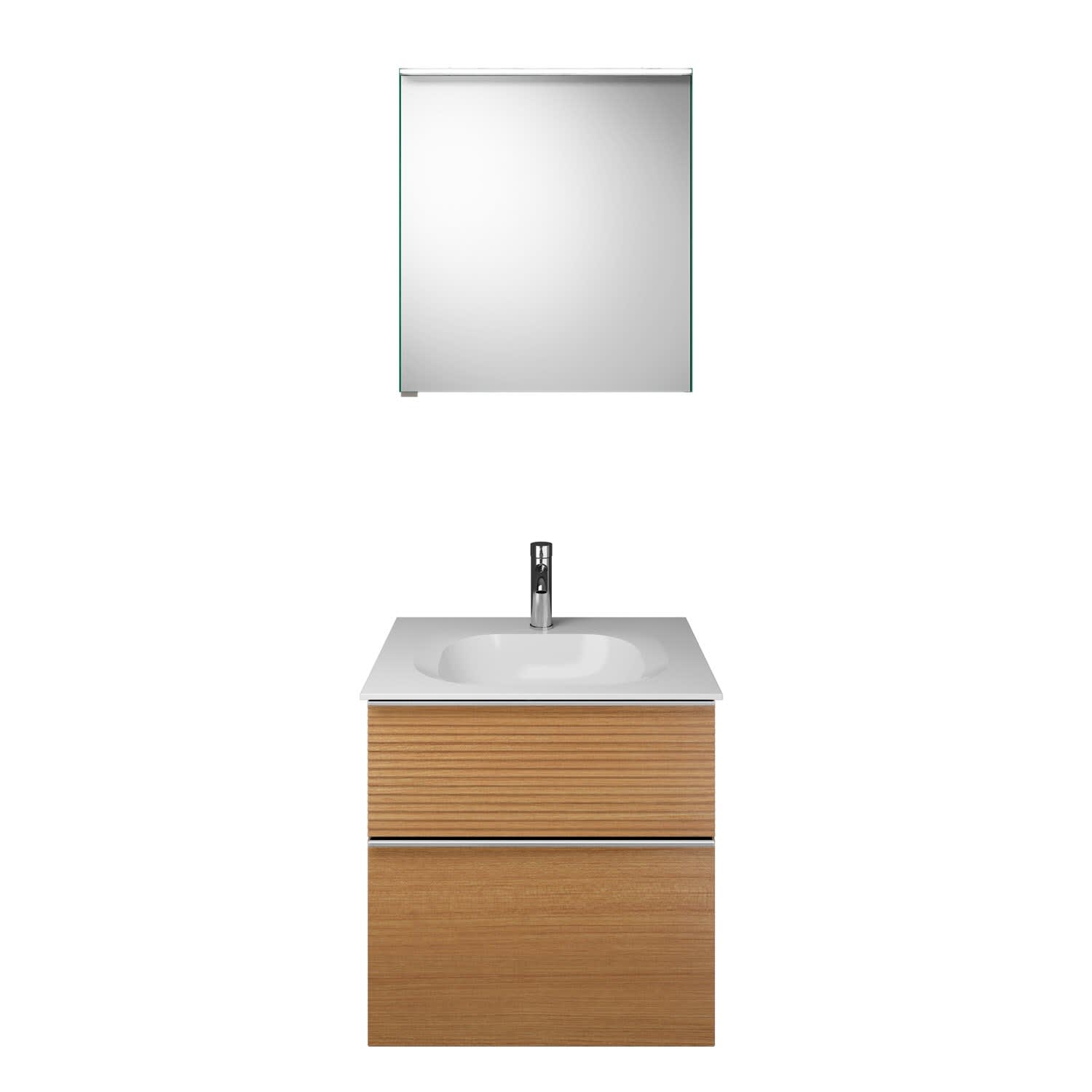 burgbad Fiumo Badmöbel-Set 62 cm mit Waschtisch und Unterschrank mit Griff G0146 sowie mit Spiegelschrank mit Türanschlag rechts