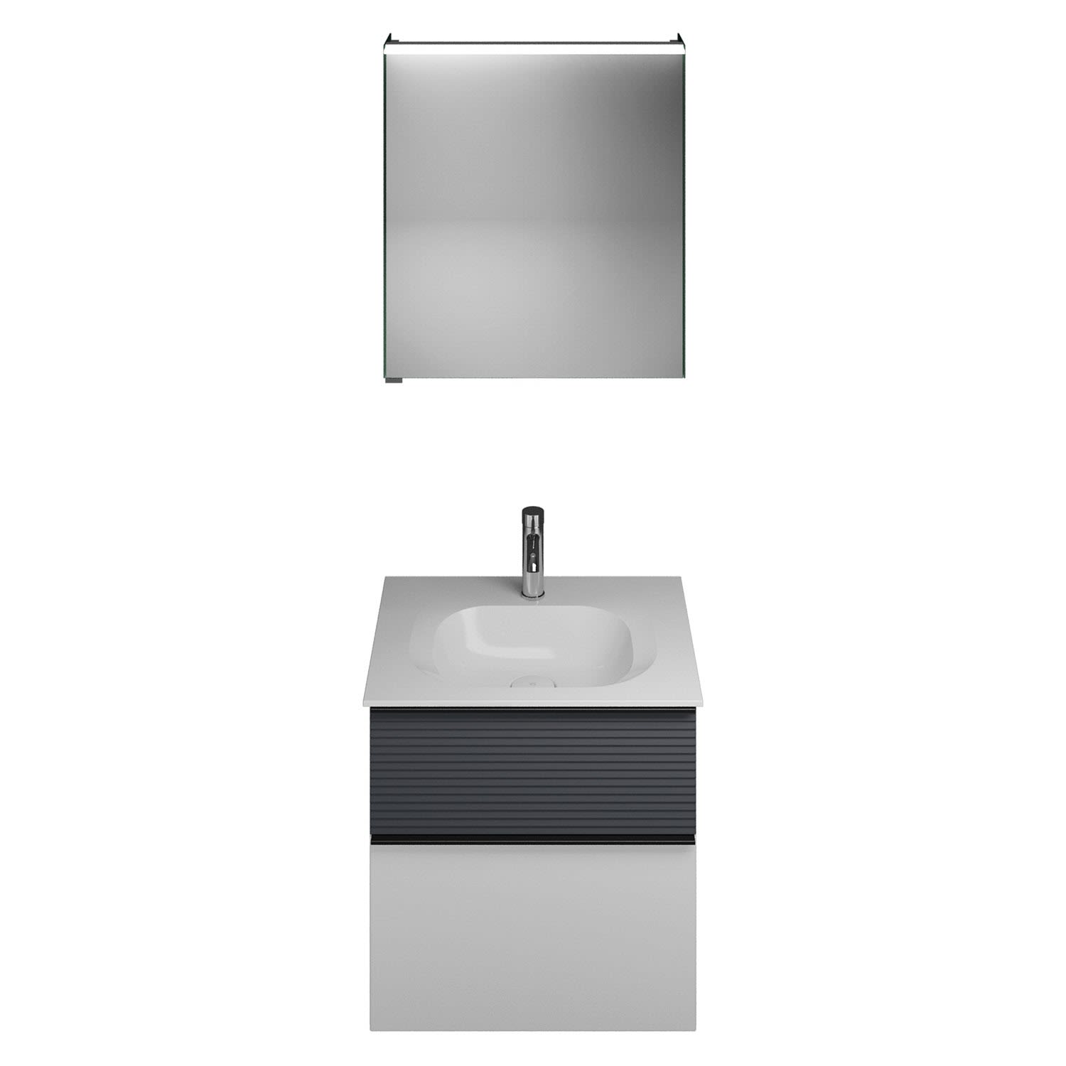burgbad Fiumo Badmöbel-Set 62 cm mit Waschtisch und Unterschrank mit Griff G0200 sowie mit Spiegelschrank mit Türanschlag rechts