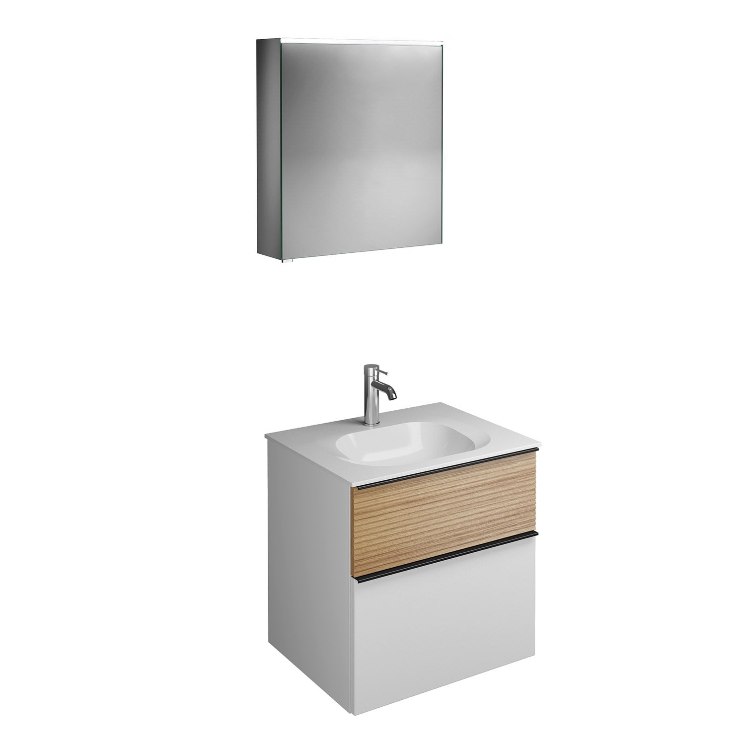 burgbad Fiumo Badmöbel-Set 62 cm mit Waschtisch und Unterschrank mit Griff G0200 sowie mit Spiegelschrank mit Türanschlag rechts